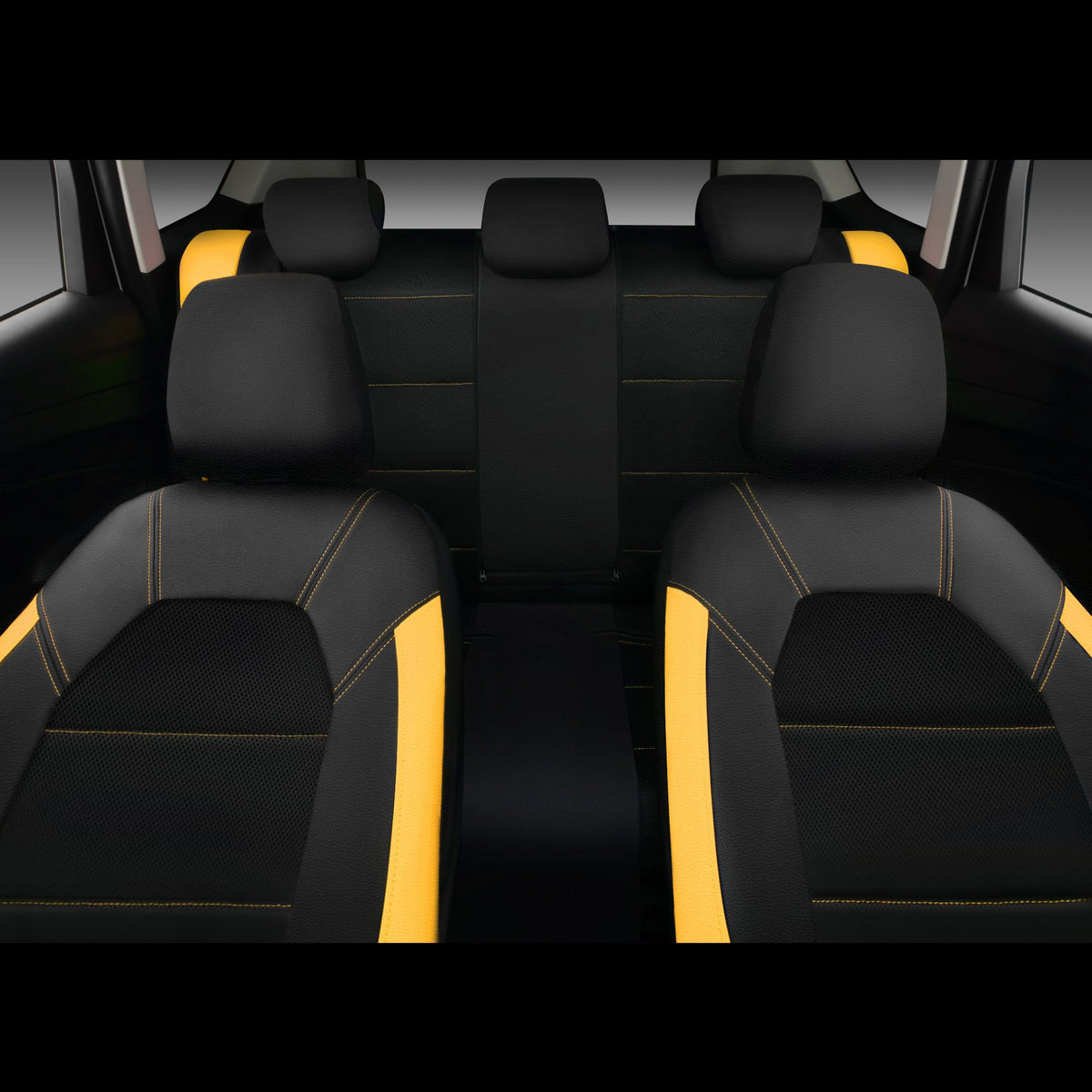 CAR PASS Leather Seat Covers, Breathable Universal Car Seat Cover Full Set for Cute Women Girly,5mm Composite Sponge Inside,Airbag Compatible Fits Most Auto,SUVs,Trucks,Vans(Full Set,Black&Yellow)