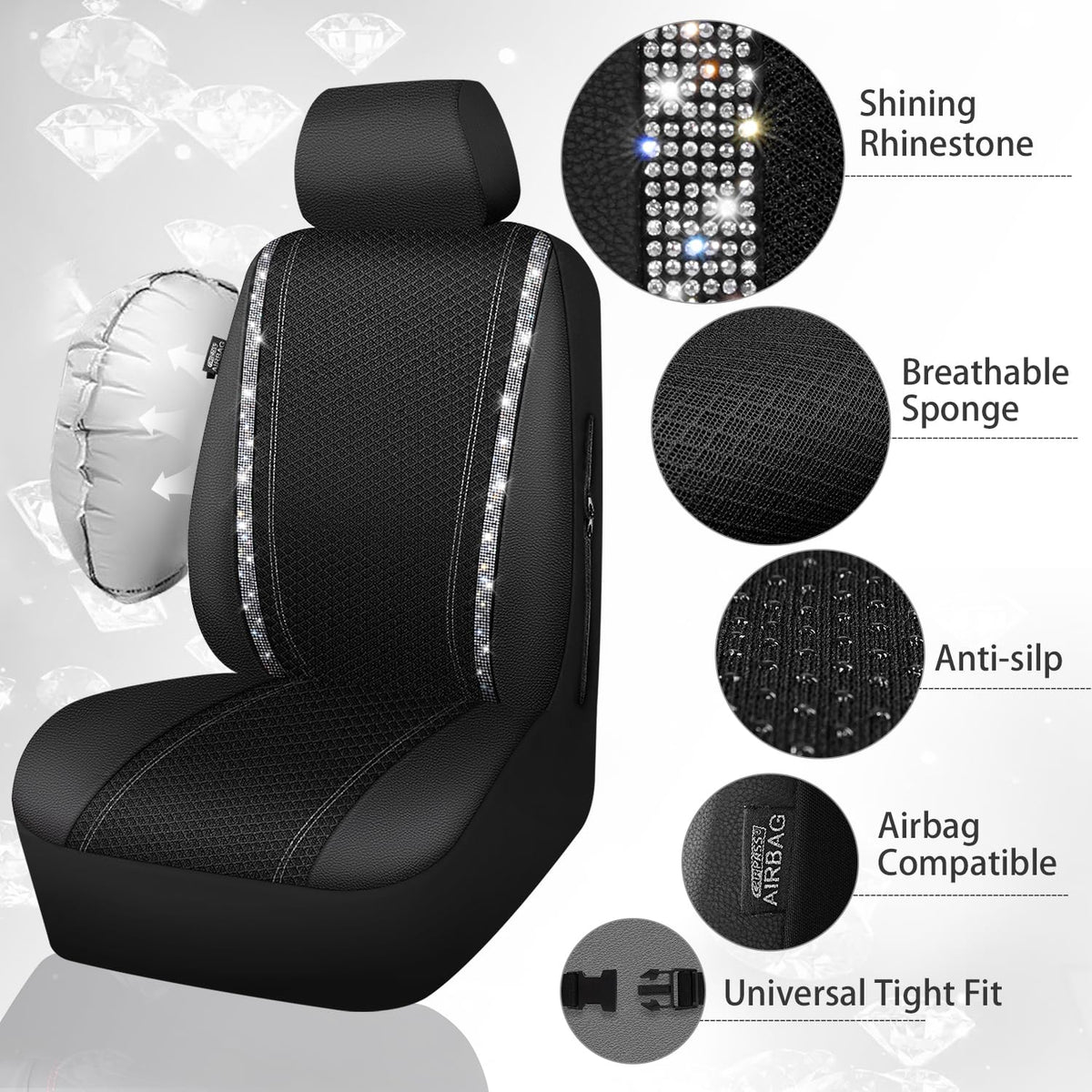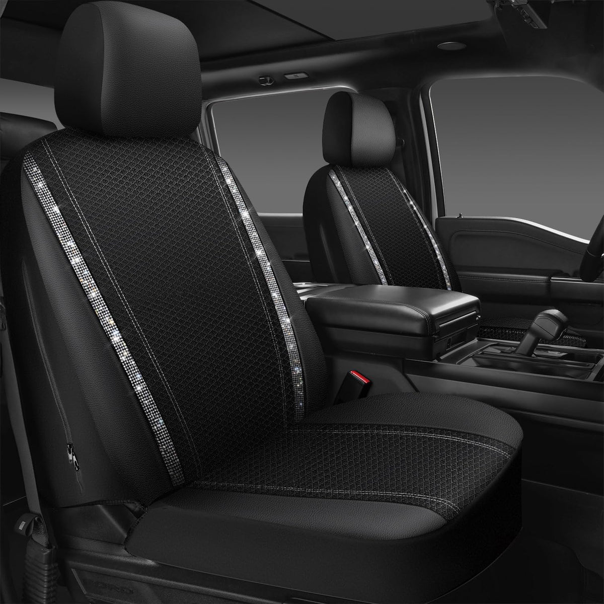 Car Pass Mesh Bling Diamond Car Seat Cover 2 Front Interior Sets Lined Sponge, Breathable Universal Shining Glitter Sparkly Crys