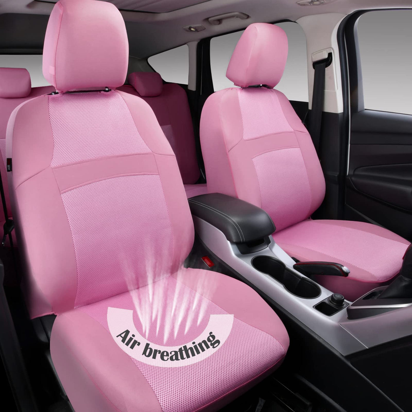 Car Pass Pink Car Seat Cover Full Sets, Air Breath In Summer Mesh Seat Cover 5Mm Sponge Airbag Composite, Cute For Women Girly, Universal Fit Suv, Vans, Sedans,Trucks, Automotive Interior All Pink
