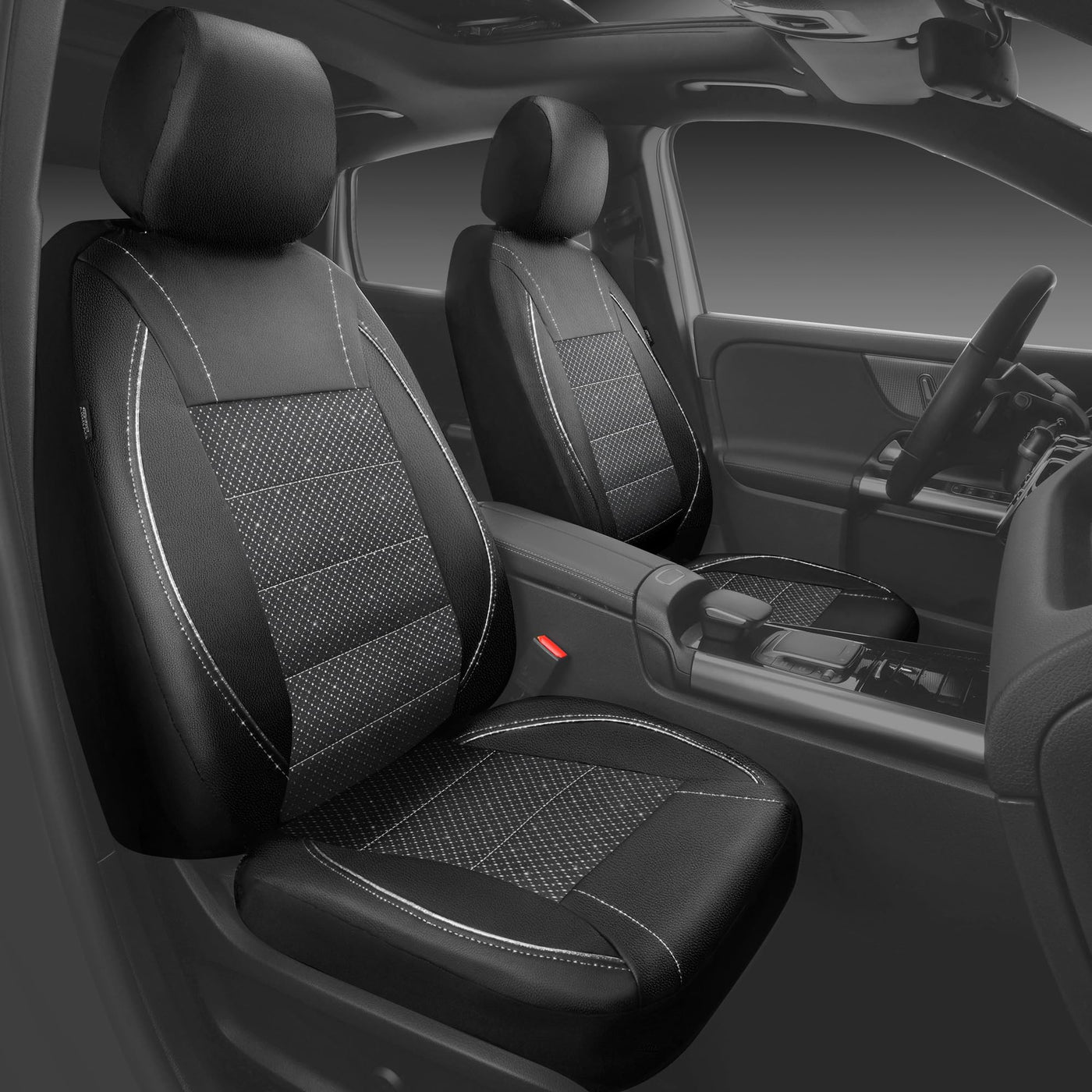 Car Pass Piping Pu Leather Car Seat Cover Full Set,Inside Zipper Design And Reserved Opening Holes, Airbag Compatible,Universal Fit For Car, Suvs,Van,Trucks(Full Set, Black And Silver)