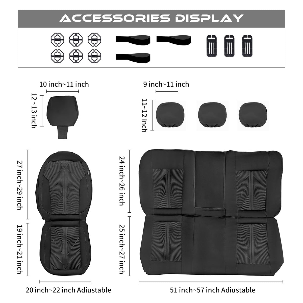 Car Pass Waterproof Seat Covers Full Set,Neoprene Wetsuit, All-Weather Non-Slip Durable, Universal Fit For Suv, Sedans, Trucks,