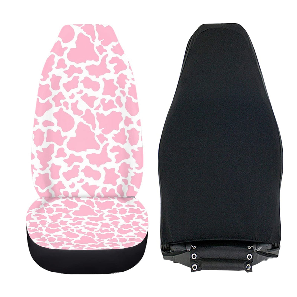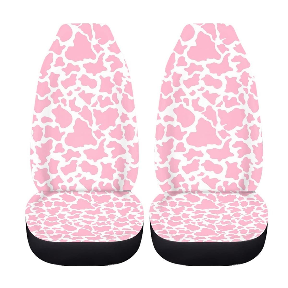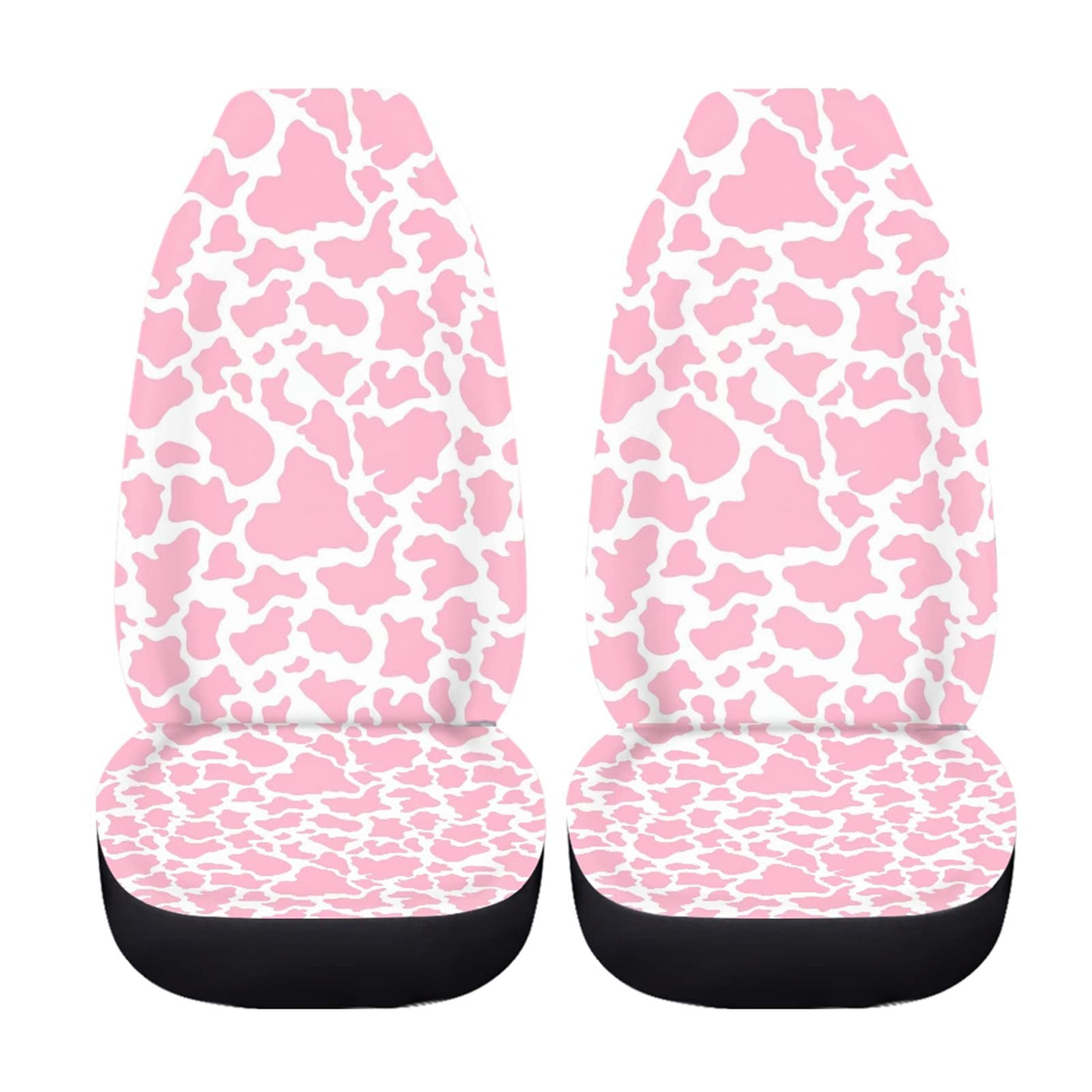 Dreaweet Pink Cow Animal Print Car Seat Cover 2 Pcs Car Accessories for Women Ladies Soft Car Seat Cushion Durable Auto Front Bu
