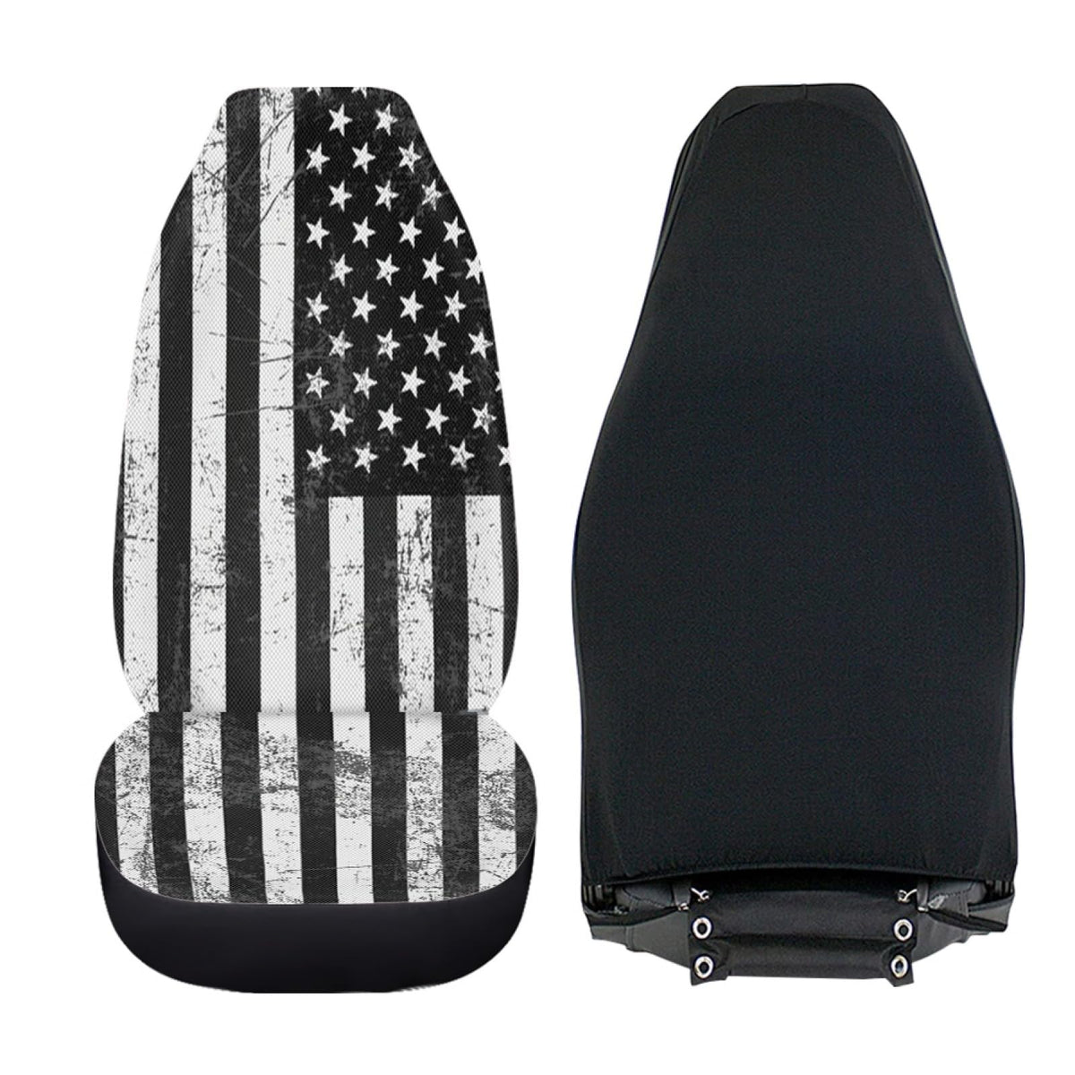 ELEQIN Patriotic American Flag Print Front Seat Cover 2 Pcs,Classic Black White Universal Vehicle Seat Protector Mat Covers, Fit