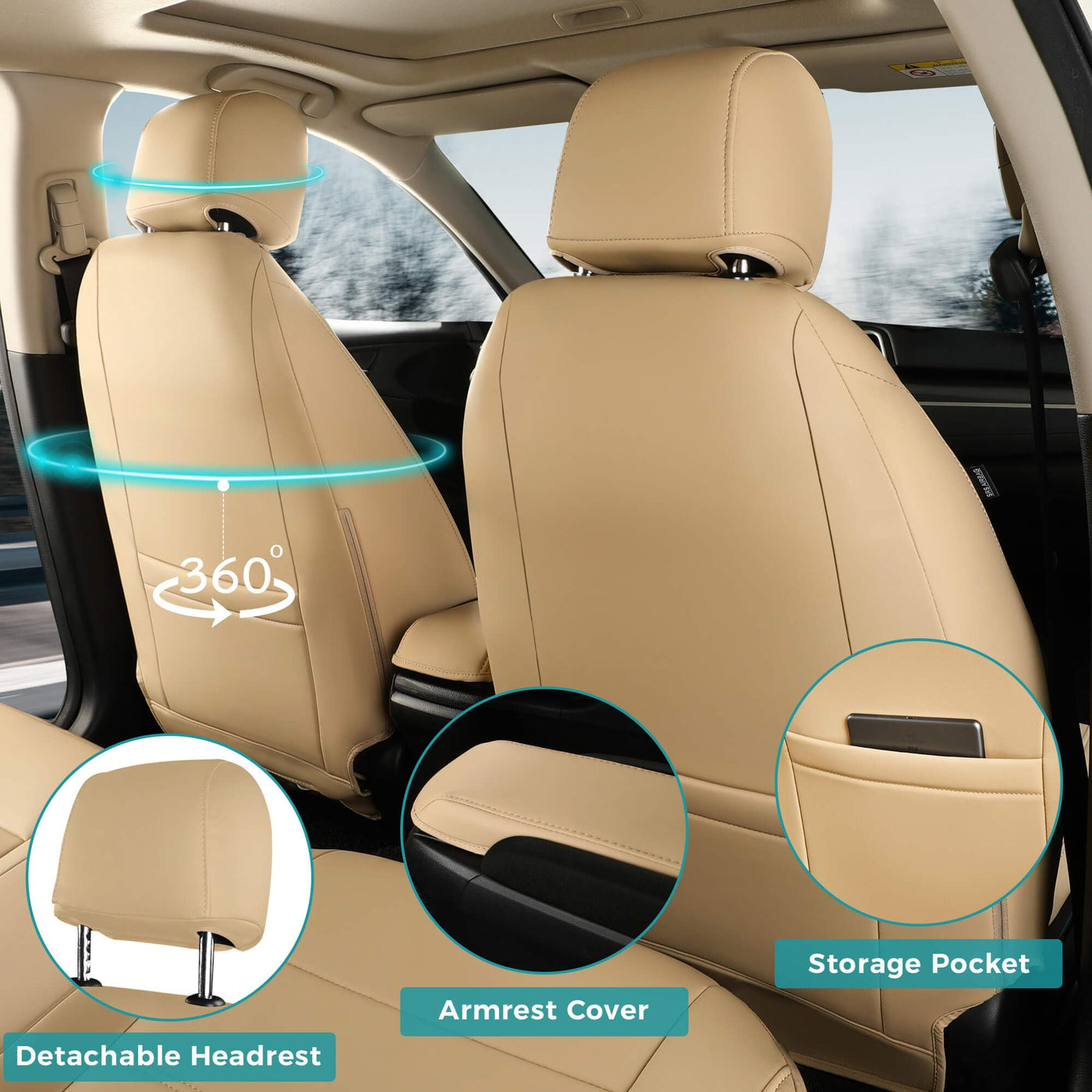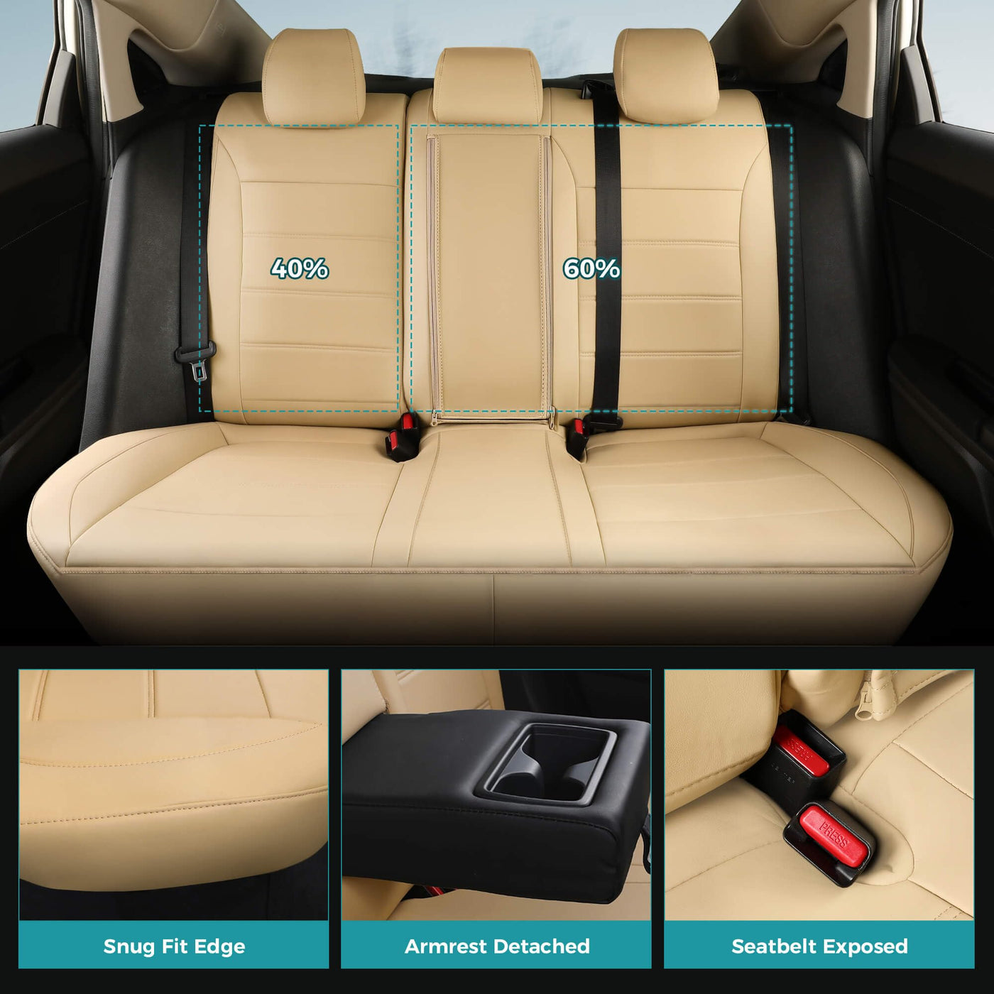 FEINEPRO Seat Covers for Honda Civic Sedan 4DR Sedan EX 2022 2023 2024, Beige Leather Car Seats Cover Full Set for car
