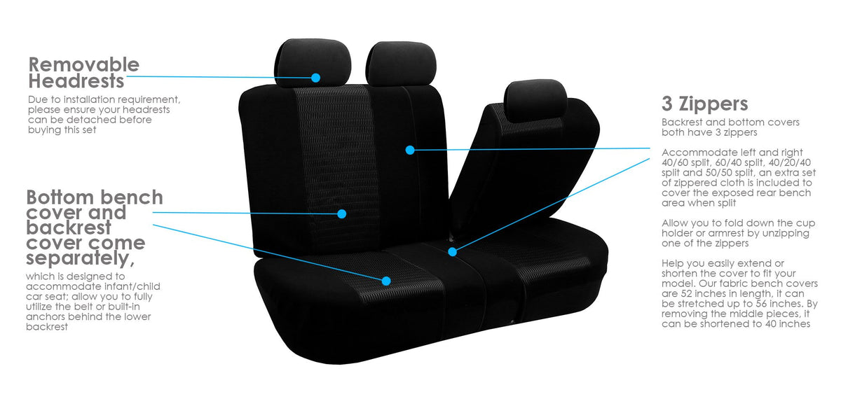 Protect The Back Seat Of Your Car With This High-Quality Car Seat Cover. Fh Group Created The Most Versatile And Useful Back Seat Cover That Will Be The Best Car Seat Protector For Your Rear Bench, No Matter How It'S Designed. Our Universal Fit Car Seat Covers Will Fit Most Car Back Seats Because They Feature Zippers In The Backrest And The Bottom Seat. These Zippers, Along With The Mesh Pieces, Will Allow The Cover To Fully Protect The Rear Seat, Even If It Is A 50/50, 40/60, Or 60/40 Split Rear Bench. Does Your Car Have A Longer Back Seat? No Problem, Our Car Seat Cover Will Fit Most Rear Seats Since The Zipper Allows The Addition Of An Extra Piece To Elongate The Cover To Protect Longer Seats. Our Zipper Design Also Allows Full Access To The Middle Console Or Arm Rest On The Back Seat. We Design Our Car Seat Covers With High-Quality Materials That Are Meant To Last And Protect Your Seats From Any Spills, Stains And Dirt. Our Durable Car Seat Protectors Are Great Car Interior Accessories. Sit Back And Relax Because Fh Group Got You Covered! Protect Your Car Seats And Preserve Their Lifespan With These Beautifully Designed Covers. Striped Panels Frame The Center Of Our Super Soft Fabric To Upgrade The Look Of Your Interior While Keeping Things Simple And Uncluttered.