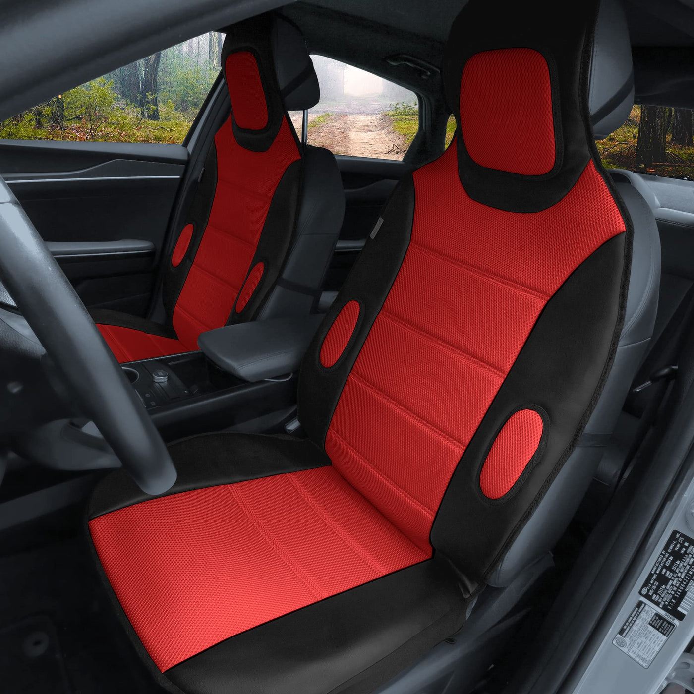 FH Group got you covered! Our premium cloth car seat covers not only provide the best protection for your car's upholstery against any type of mess but they also enhance the looks of your car's interior. No need to worry anymore about spills, stains, mud, or anything damaging your original car seats because this car seat protector got your back. Every car seat cover we make is built with high-quality, durable materials that will protect your car's upholstery at all times. We offer automotive seat covers in numerous fabrics, colors, and designs, so you can easily find the seat cover for cars that fits your style the most. We have car seat covers for women, for men and for everyone. Our bucket seat covers are compatible with most sedans, SUVs, and vans bucket seats thanks to the universal high back seat cover design that delivers the snug fit you're looking for, no matter if the front seats headrest is removable or not. Also, because safety is one of our main goals, this front set of cover for car seats is airbag compatible (officially tested!). We understand messes happen, thats why these waterproof seat covers for cars are convenient for any type of driver. FH Group car seat covers are a great car interior accessory for your vehicle. We have it all: car seat covers for SUV, car seat covers for autos, car seat covers for vans, you name it!.