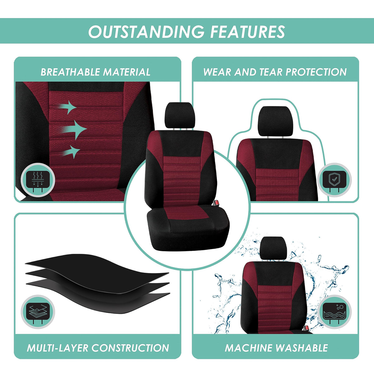 FH Group got you covered! Our premium 3D air mesh car seat covers not only provide the best protection for your car's upholstery against any type of mess but they also enhance the looks of your car's interior. No need to worry anymore about spills, stains, mud, or anything damaging your original car seats because this car seat protector got your back. Every car seat cover we make is built with high-quality, durable materials that will protect your car's upholstery at all times. We offer automotive seat covers in numerous fabrics, colors, and designs, so you can easily find the seat cover for cars that fits your style the most. We have car seat covers for women, for men and for everyone. Our auto seat covers are compatible with most sedans, SUVs, and vans front seats thanks to the universal low back seat cover design that delivers the snug fit you're looking for, only if the front seats headrest is removable. Also, because safety is one of our main goals, this front set of cover for car seats is airbag compatible (officially tested!). We understand messes happen, thats why these waterproof seat covers for cars are convenient for any type of driver. FH Group car seat covers are a great car interior accessory for your vehicle. We have it all: car seat covers for SUV, car seat covers for autos, car seat covers for vans, you name it!
