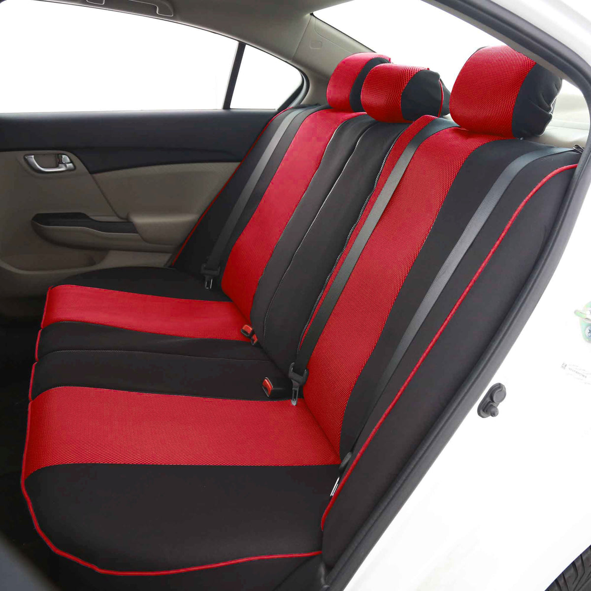 FH Group Edgy Piping Full Set Car Seat Covers, Airbag Compatible and Split Bench - Universal Fit for Cars Trucks and SUVs (Red/B