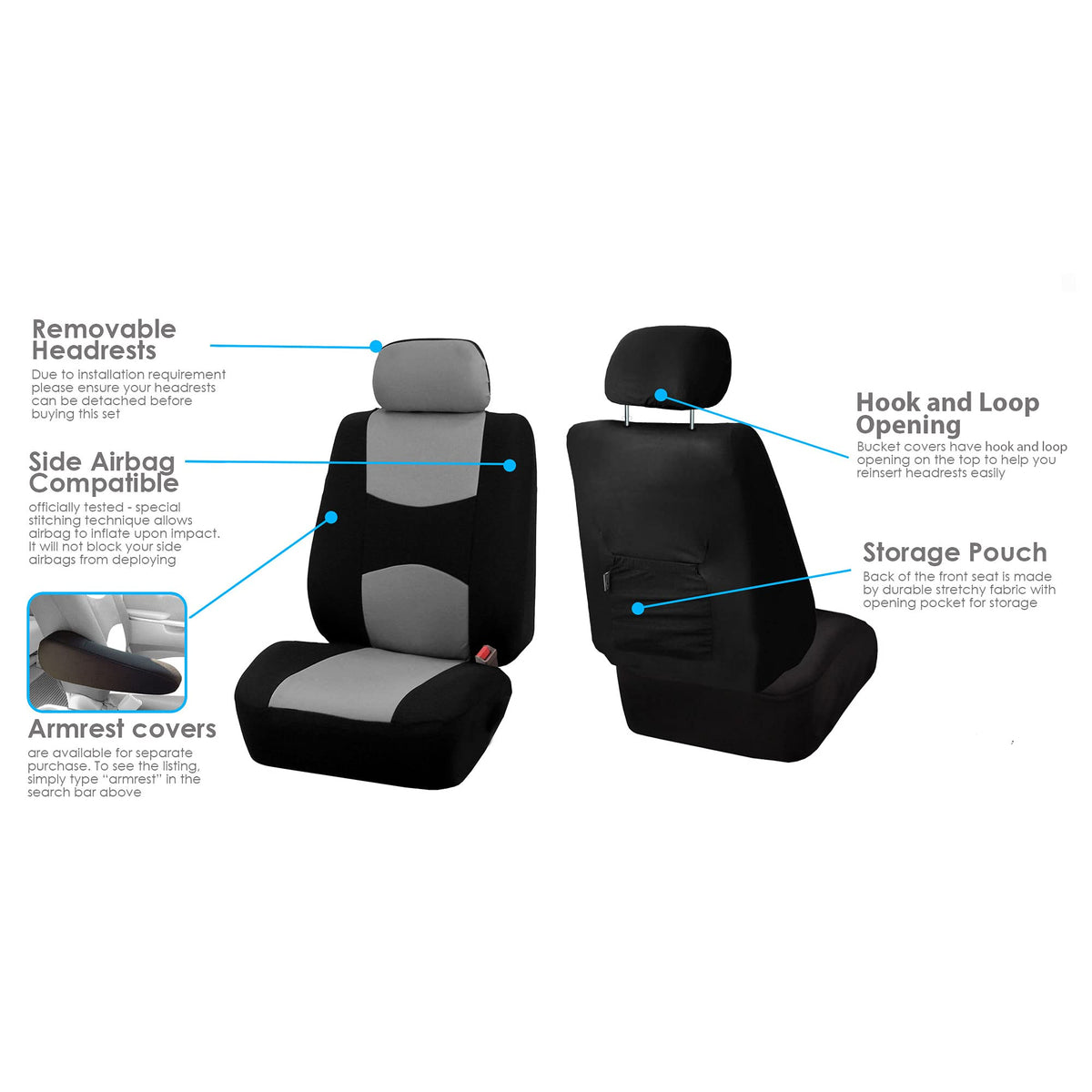 Fh Group Front Set Cloth Car Seat Covers For Low Back Seats With Removable Headrest, Universal Fit, Airbag Compatible Car Seat C