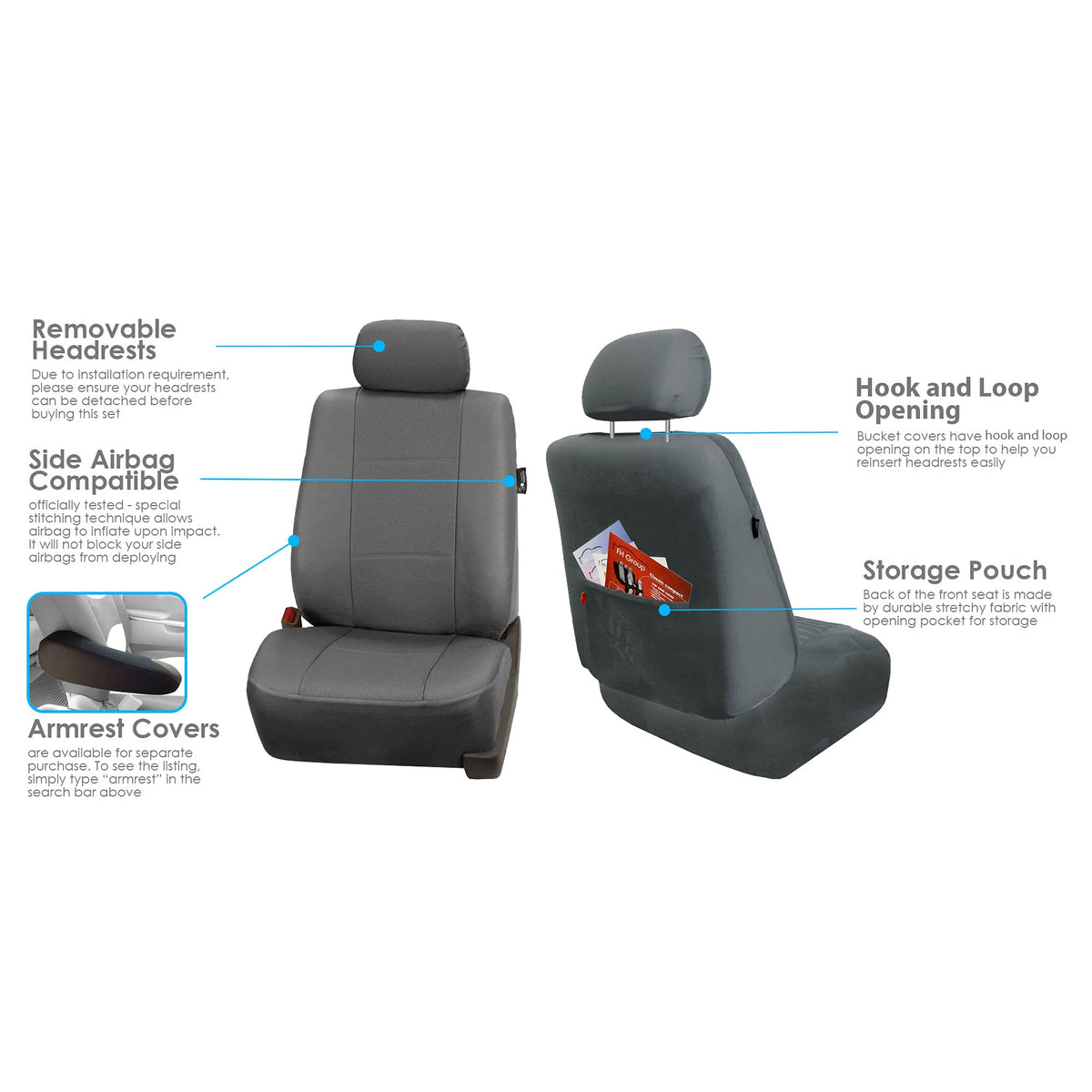 FH Group Front Set Faux Leather Car Seat Covers for Low Back Seat with Removable Headrest, Universal Fit, Airbag Compatible Seat