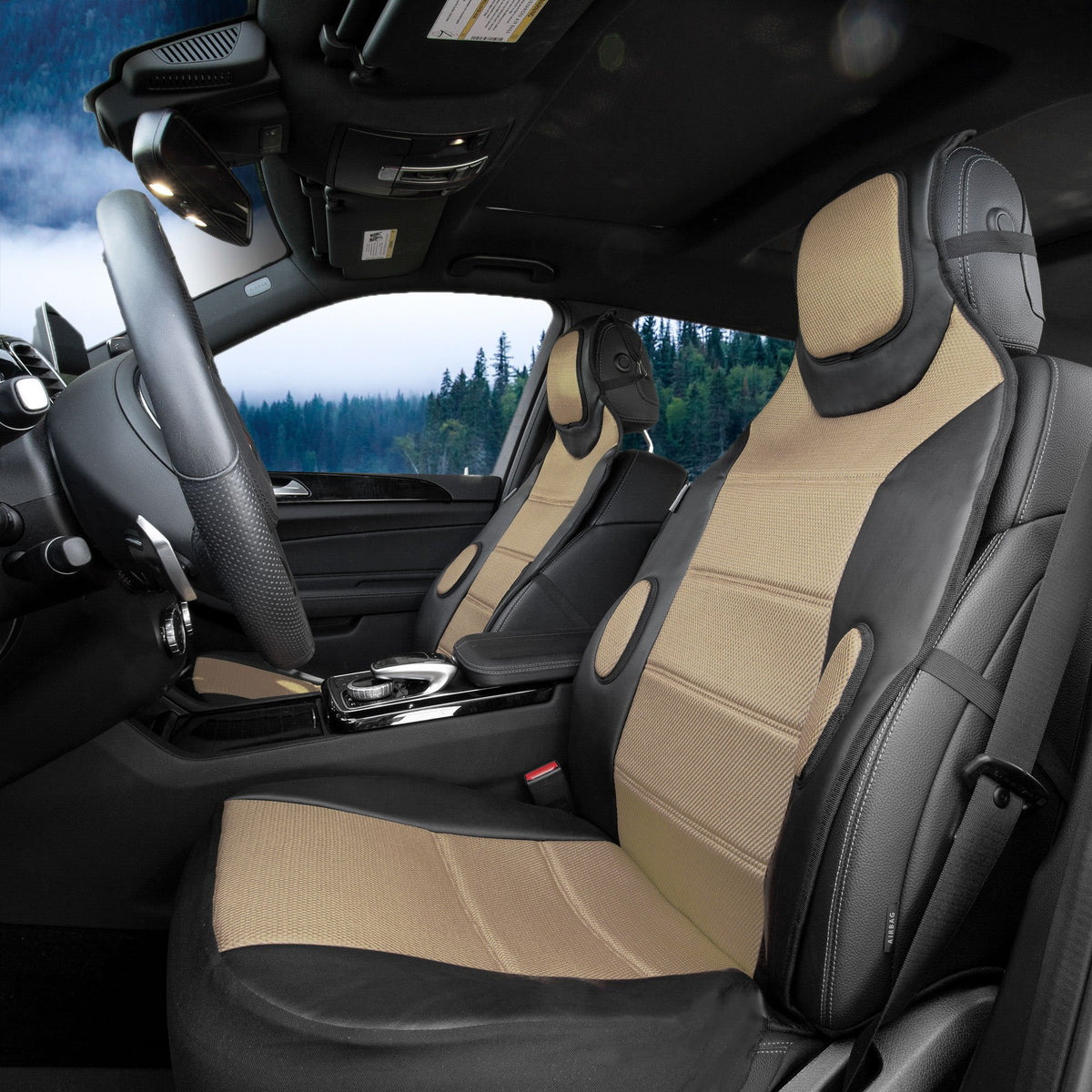 FH Group Front Set Premium 3D Air Mesh Automotive Seat Cushion - Universal Fit, Car Seat Cushions, Airbag Compatible Car Seat Cover for SUV, Sedan, Van, Beige