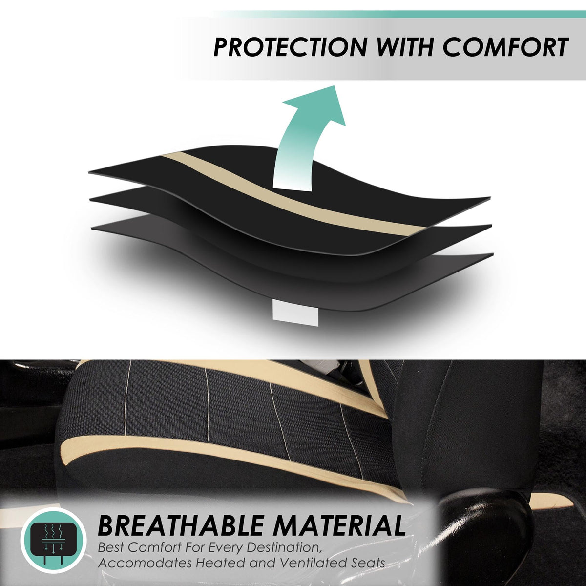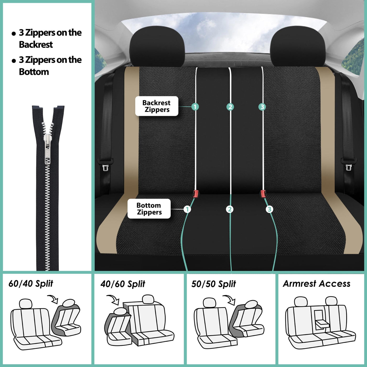 Fh Group Sports Car Seat Cover Split Bench Automotive Seat Cover Fits Detachable Headrests And Split Seats Beige Car Seat Covers