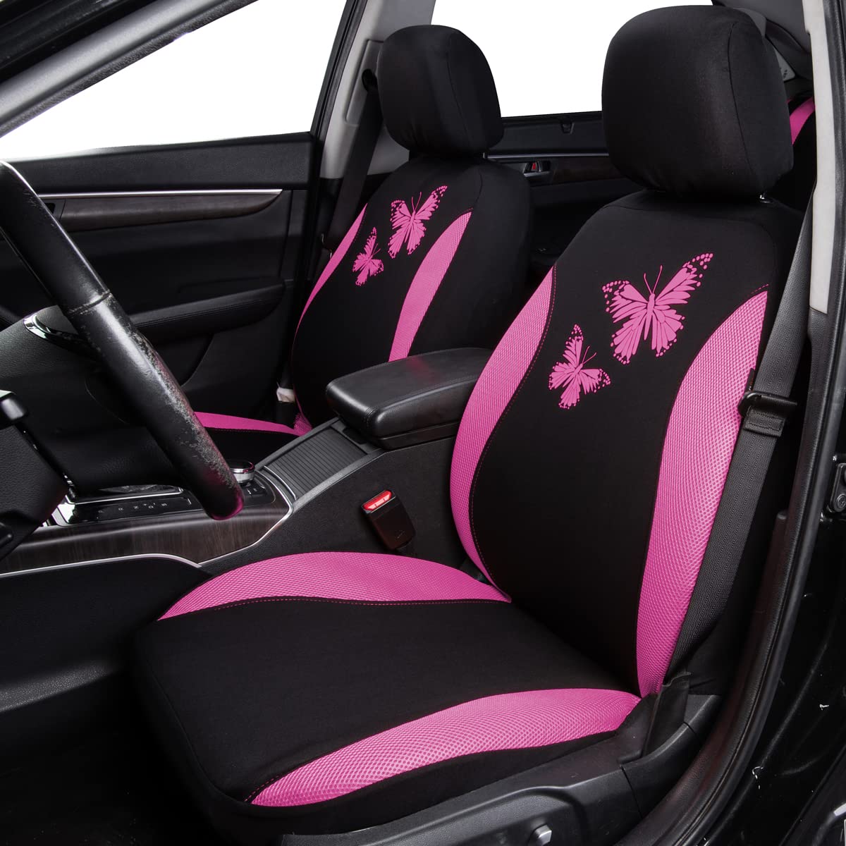 Flying Banner Butterfly Car Seat Covers Ful Set Fashion Universal Lady Woman Female Rear Bench Split Colorized (Full Set, Pink)