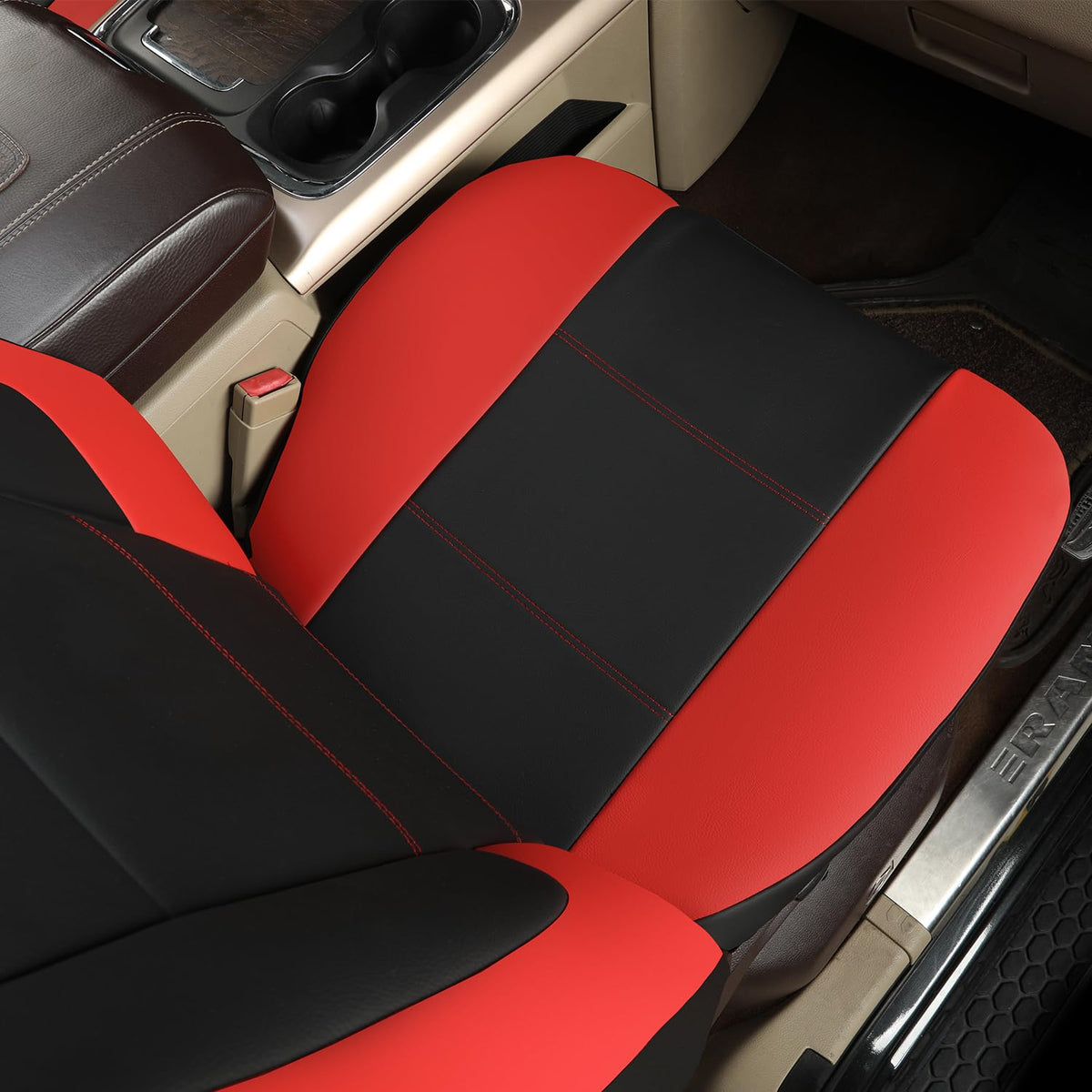 GIANT PANDA Front Car Seat Covers Custom Fit Dodge Ram 1500 2500 3500 Trucks Seat Protectors (Red) 2-Pack