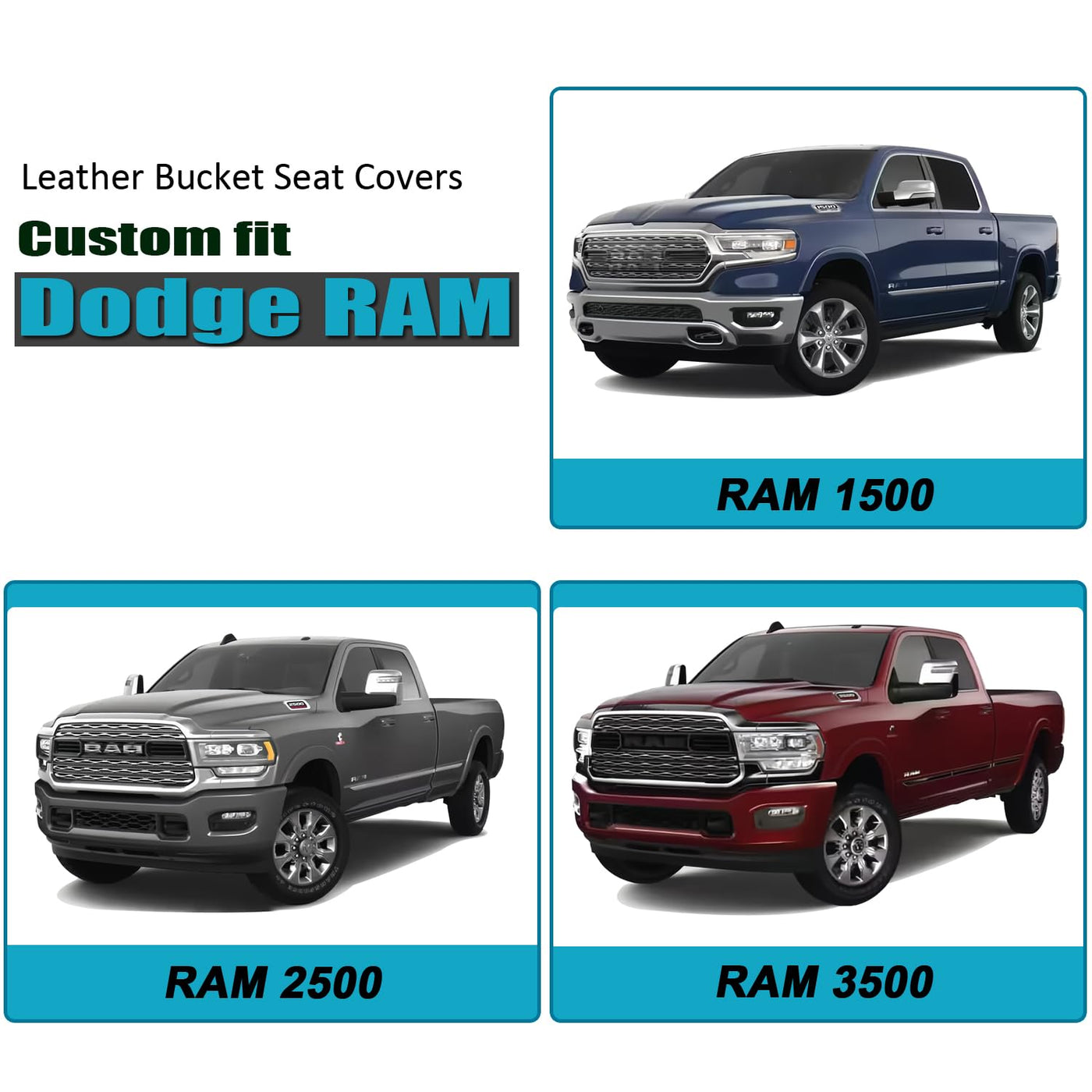 Customized front of seat covers for Ram 1500 2500 3500 Crew Quad Cab SLT Classic Bighorn. They will upgrade your interior. ?Package Contains: ? 2 Front Seat Covers with matching headrest covers ?Features: ? Comfortable to the touch ? Good breathability & Durability ? Waterproof & Easy to clean ? Exquisite sewing craftsmanship ?Installation is simple and requires your patience. If you have any problems with the installation, please send us and we will help.
