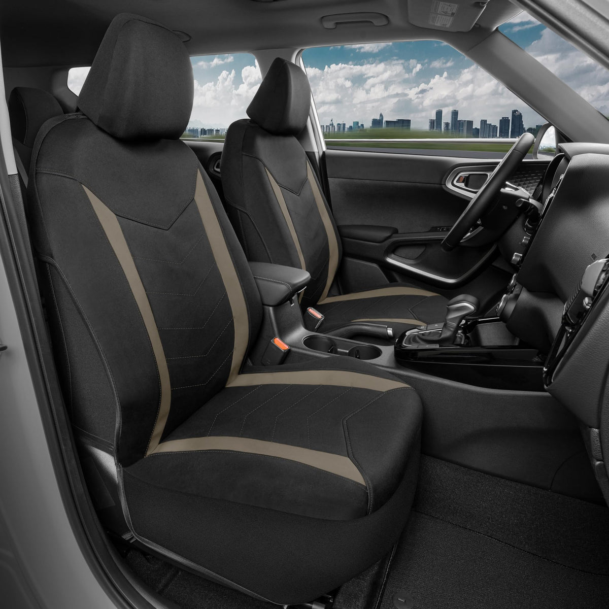 Motor Trend Spillguard Seat Covers For Cars Trucks Suv, Car Seat Covers With Waterproof Neoprene Lining, Automotive Seat Cover Set For Front Seats, Interior Car Accessories (Beige)