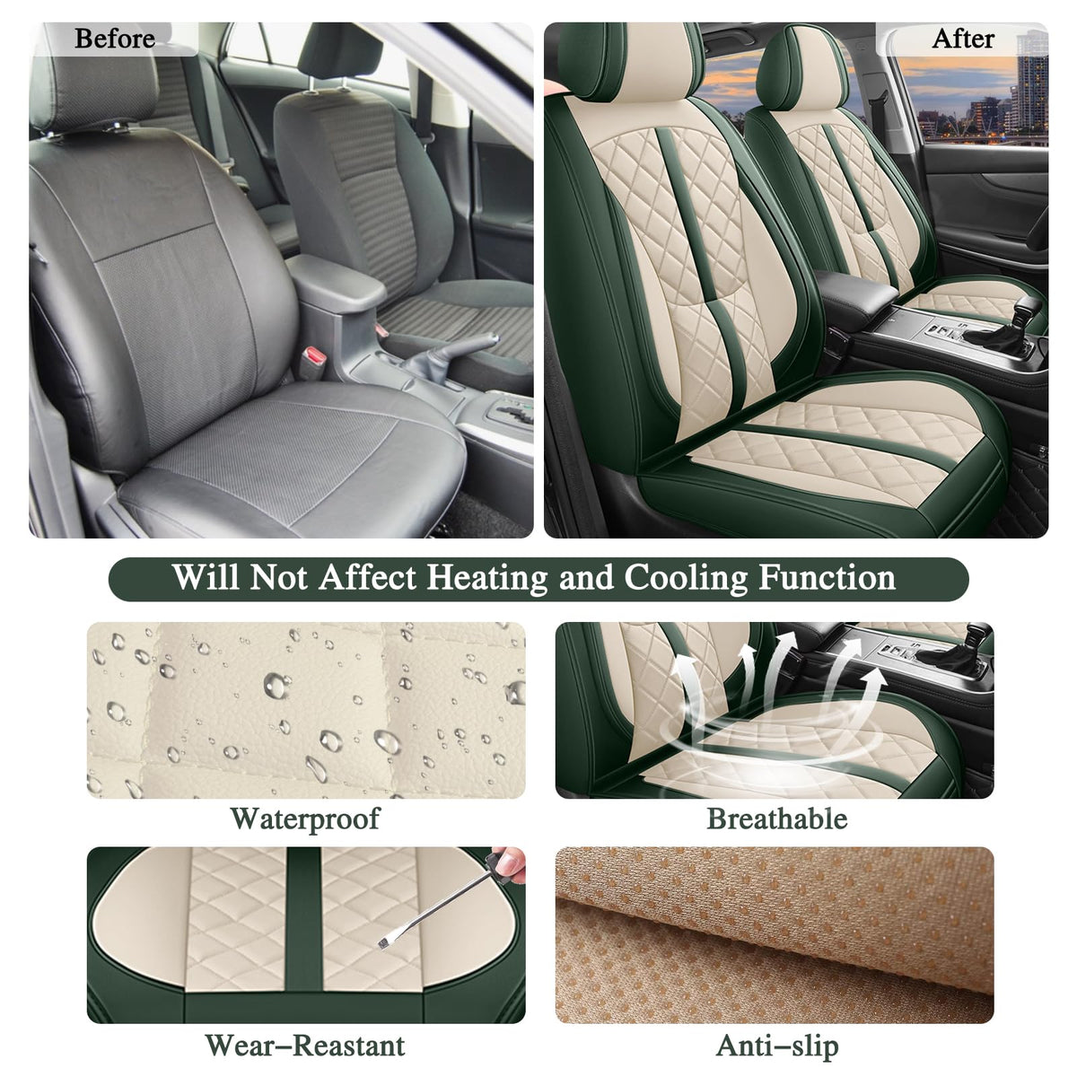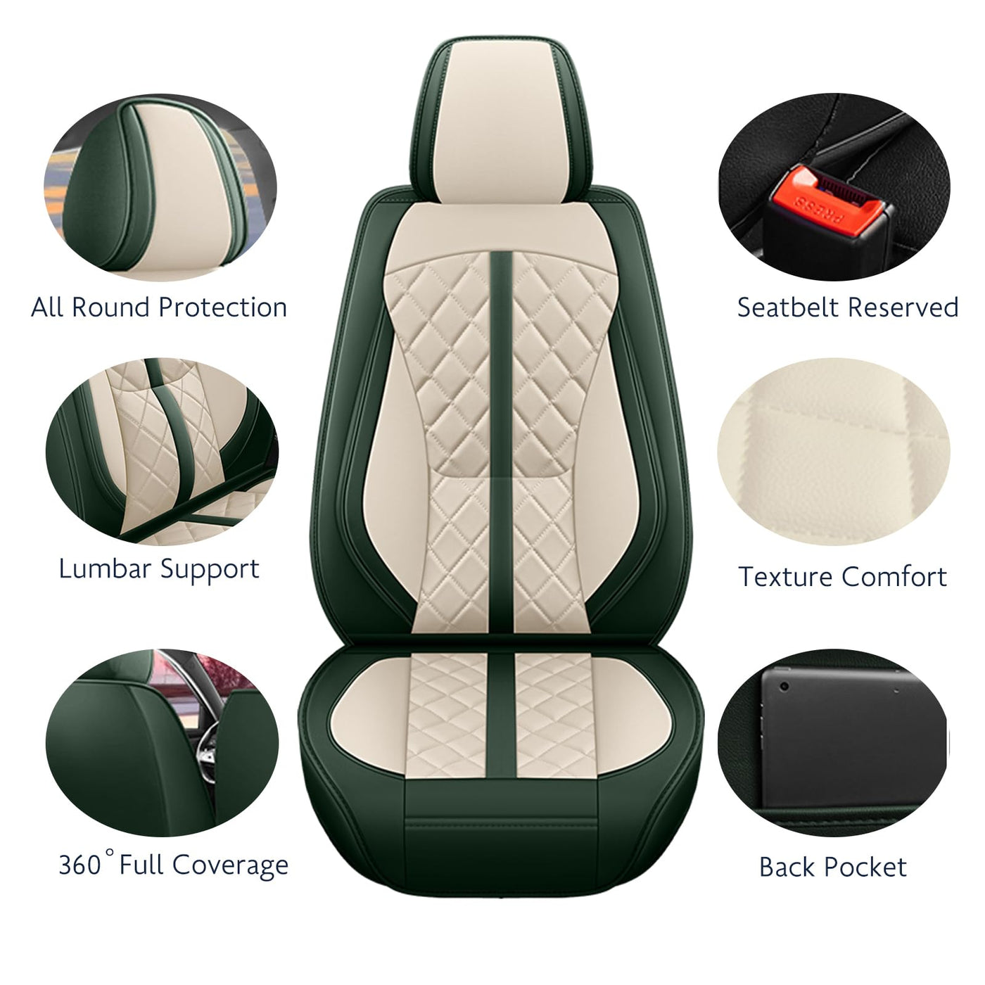otoez Green Car Seat Covers Full Set, Universal Nappa Leather Seat Cover 5 Seat Waterproof & Breathable Automotive Seat Protecto