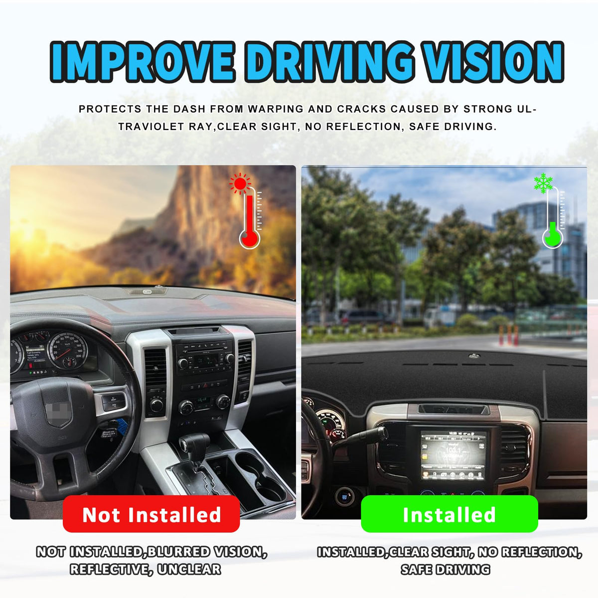 POSAID Dash Cover for Dodge Ram 1500 2500 3500 Dashboard Cover Mat Custom Fit 2010-2018 Dodge Ram Dash Mat Protector, Black