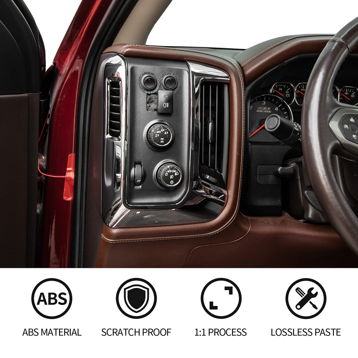 RT-TCZ for Silverado Dash Panel Trim Cover Chrome Bezel for GMC Sierra Chevy Silverado 2014-2017 Chrome Interior Accessories 4pc