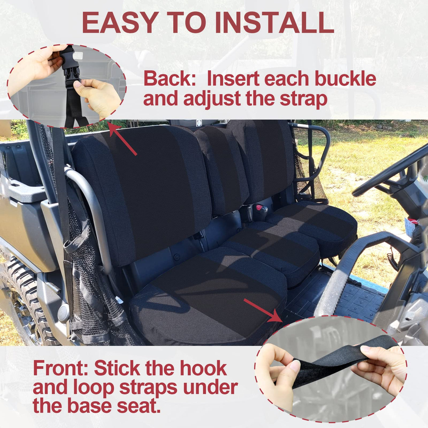 Q: What kind of protection do the seat covers offer?A: The StarknightMT UTV Defender Seat Covers provide all-around protection for your factory UTV seats. They shield against sand, water, dirt, and scratches from animal claws, ensuring that your seats remain in excellent condition while also renewing the appearance of older seats.