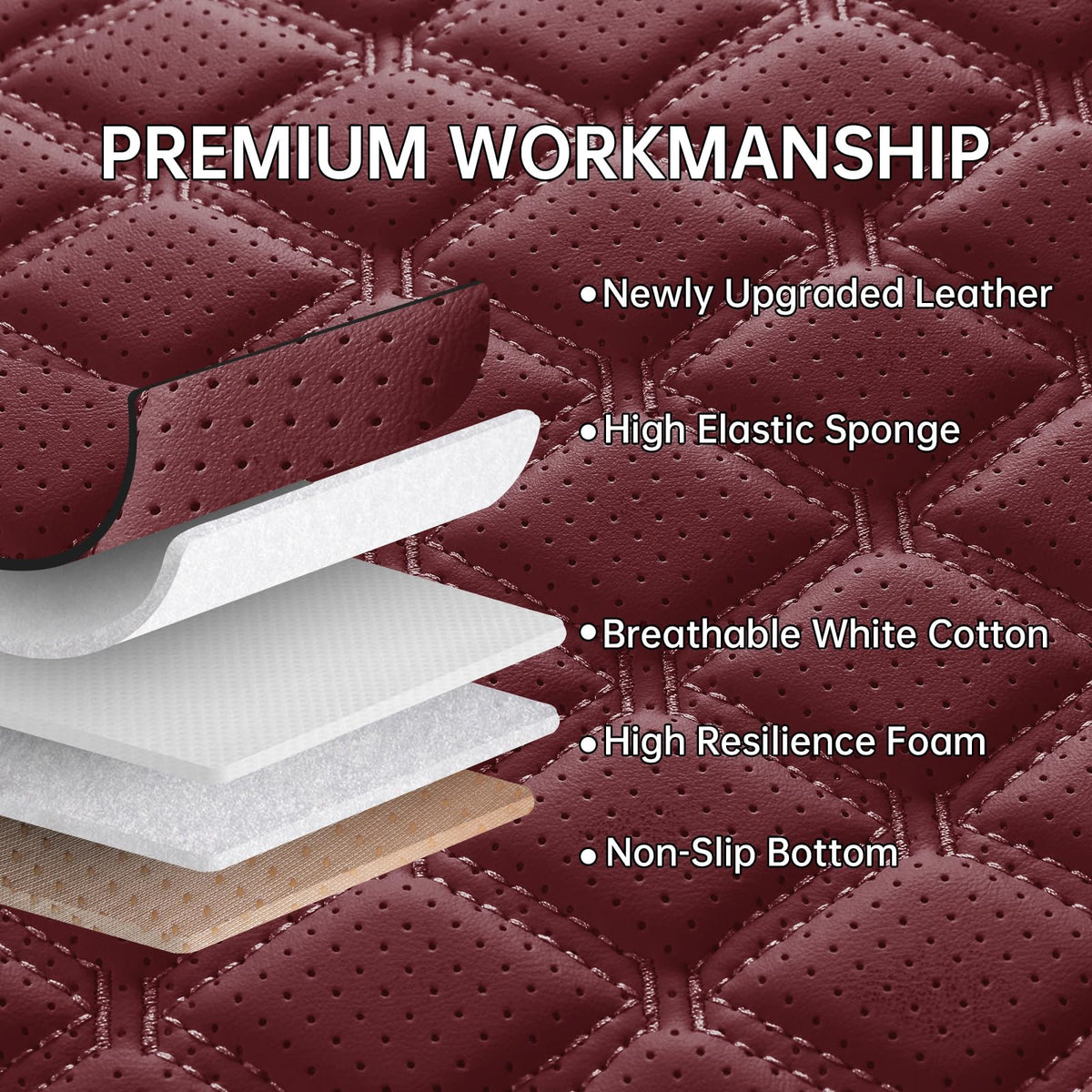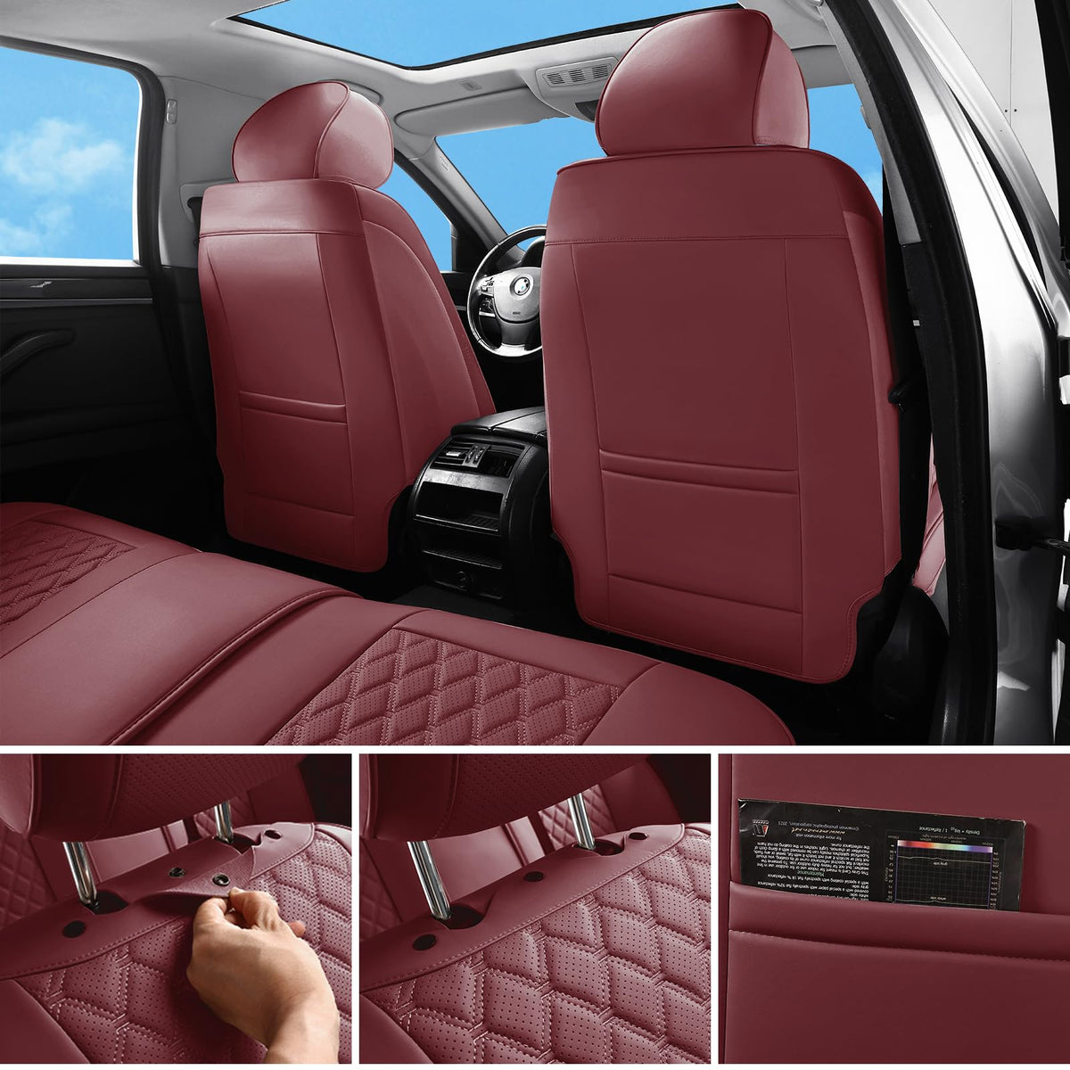 Sxikin Car Seat Covers Full Set Burgundy, Luxury Faux Leather Car Seat Covers Waterproof Non-Slip Seat Protector Universal Fit F