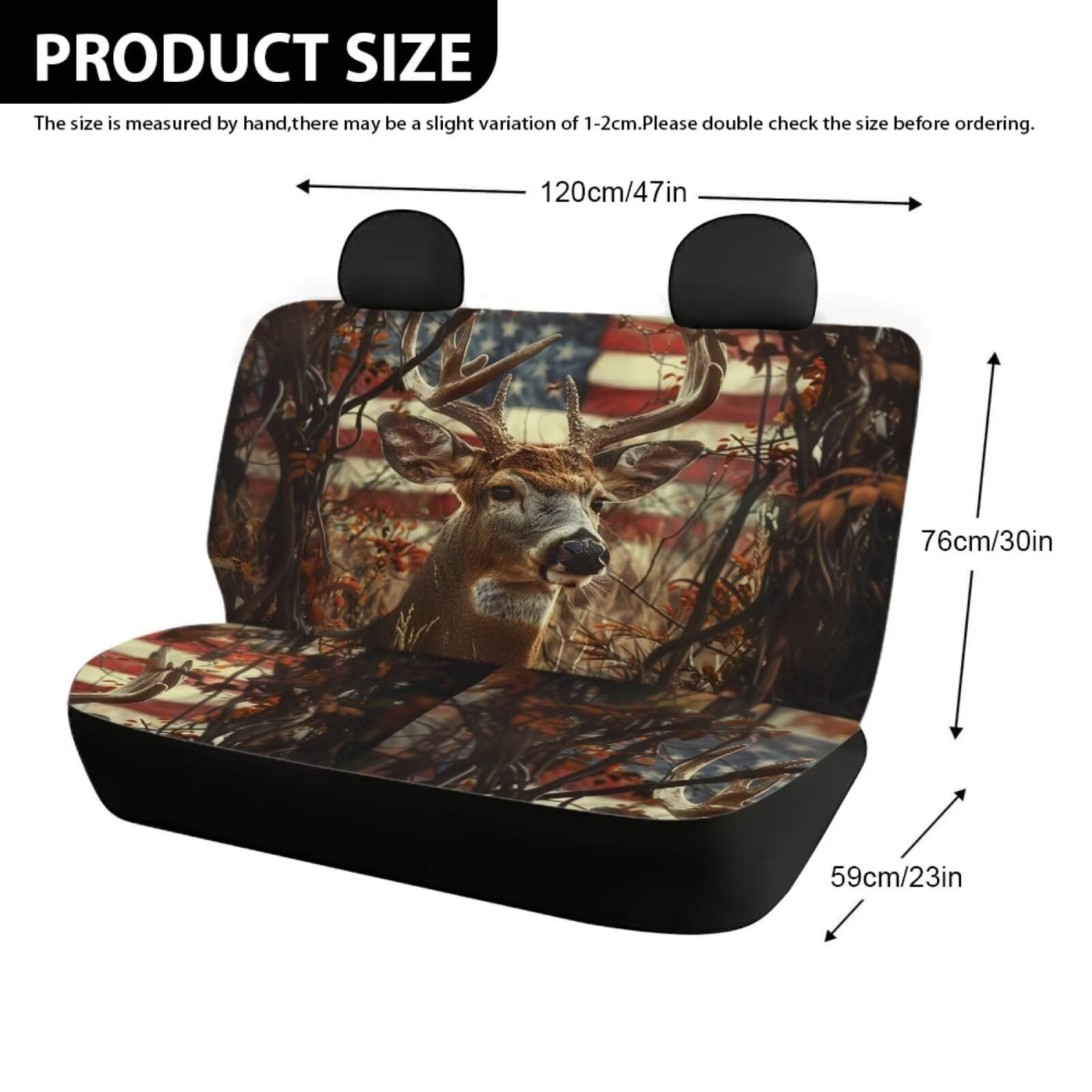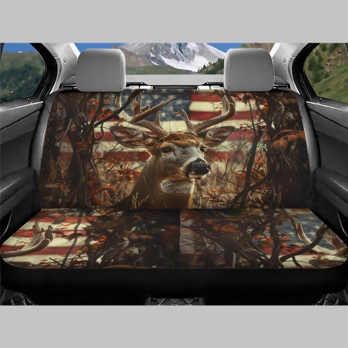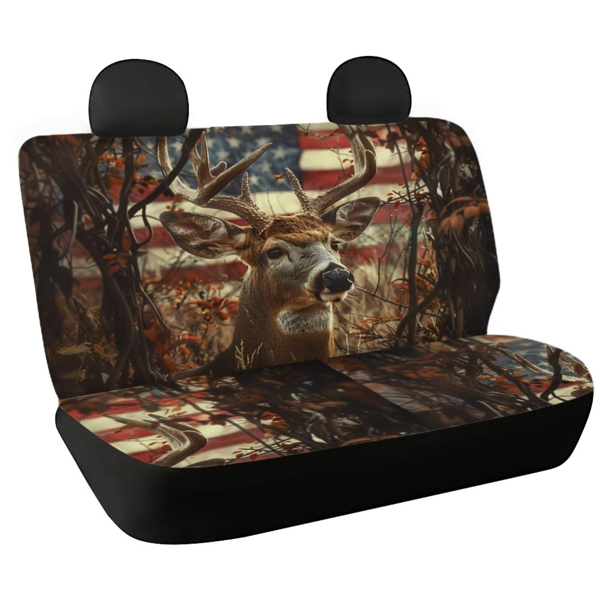 WELLFLYHOM Hunting Deer Car Seat Covers for Women Men Rear Bench Seat Cover American Flag Car Accessories Universal Saddle Blank