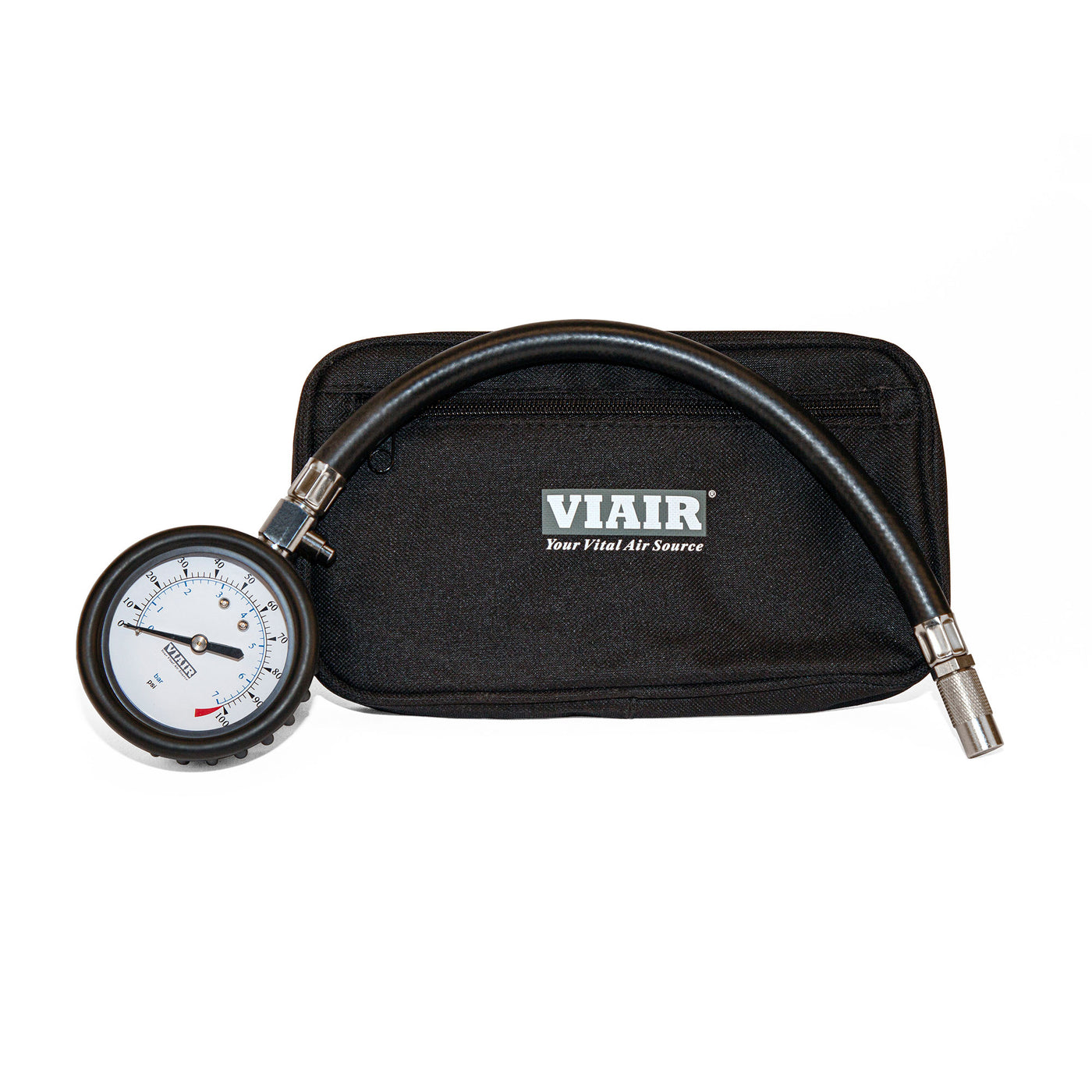 Q: How should I care for my tire pressure gauge?A: To maintain your VIAIR Tire Pressure Gauge, store it in the included pouch when not in use, keep it away from extreme temperatures, and periodically check for any signs of wear to ensure accurate readings.