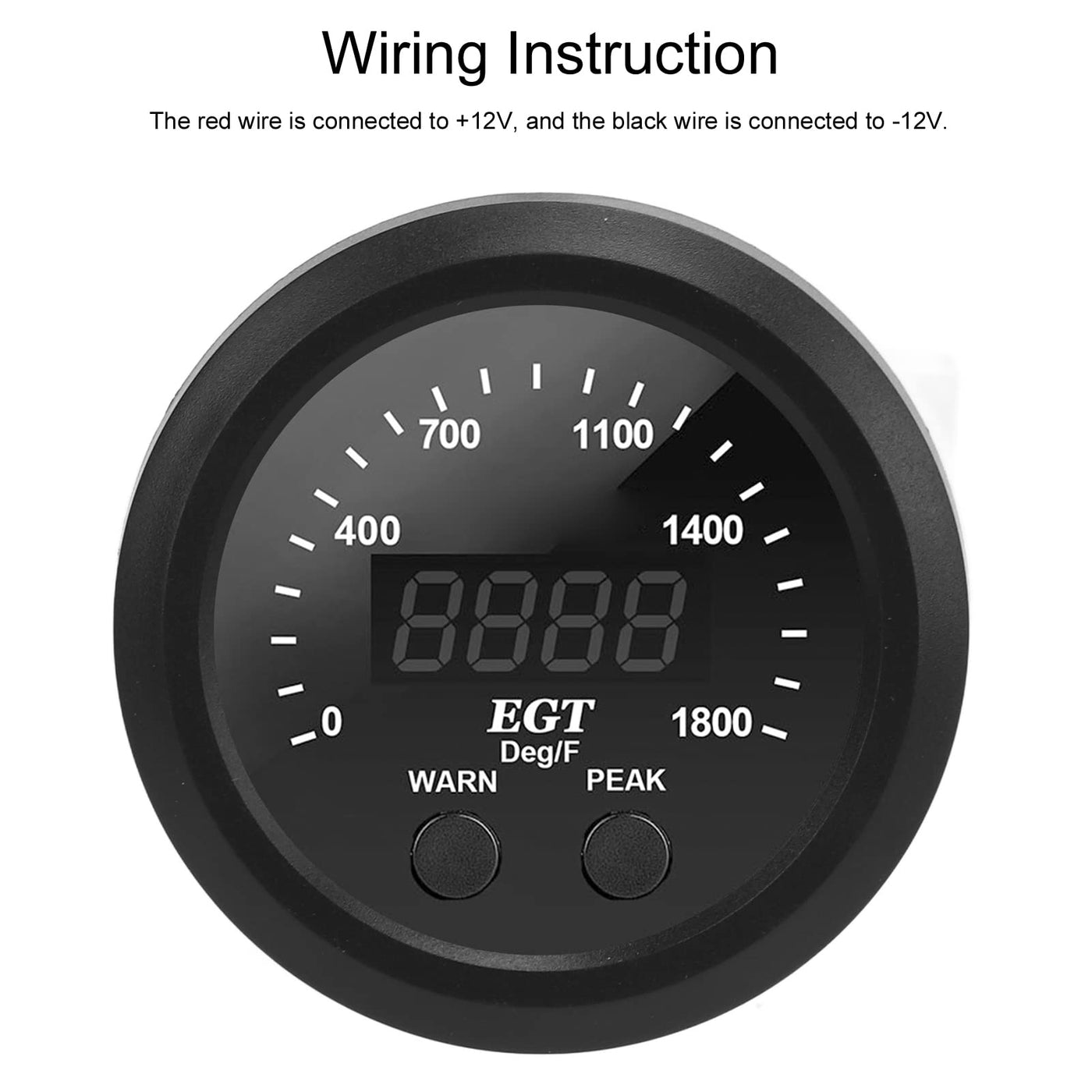 How To Use: Fixed&Nbsp;On&Nbsp;The&Nbsp;Dashboard. Specification: Item Type: Exhaust Gas Temperature Meter Material: Abs Background Light: Red Led + White Background Measuring Range: 0-1800? Working Voltage: 12V Application: Universal Fixed Size: Approx. 2-1/16In (52Mm) Package List: 1 X&Nbsp;Exhaust Gas Temperature Meter 1 X Power Wiring Harness 1 X Sensor 1 X Manual Note: 1. This Product Is Suitable For 12V Power Supply, And Strictly Forbidden To Use Power Supply Exceeding 18V. 2. The Power Connection Of This Product Is A Red And Black Power Cord, The Red Wire Is Connected To +12V, And The Black Wire Is Connected To -12V. 3. Connect Other Connectors As Plug And Play Connectors, And It Is Strictly Forbidden To Damage Or Replace Other Connectors.