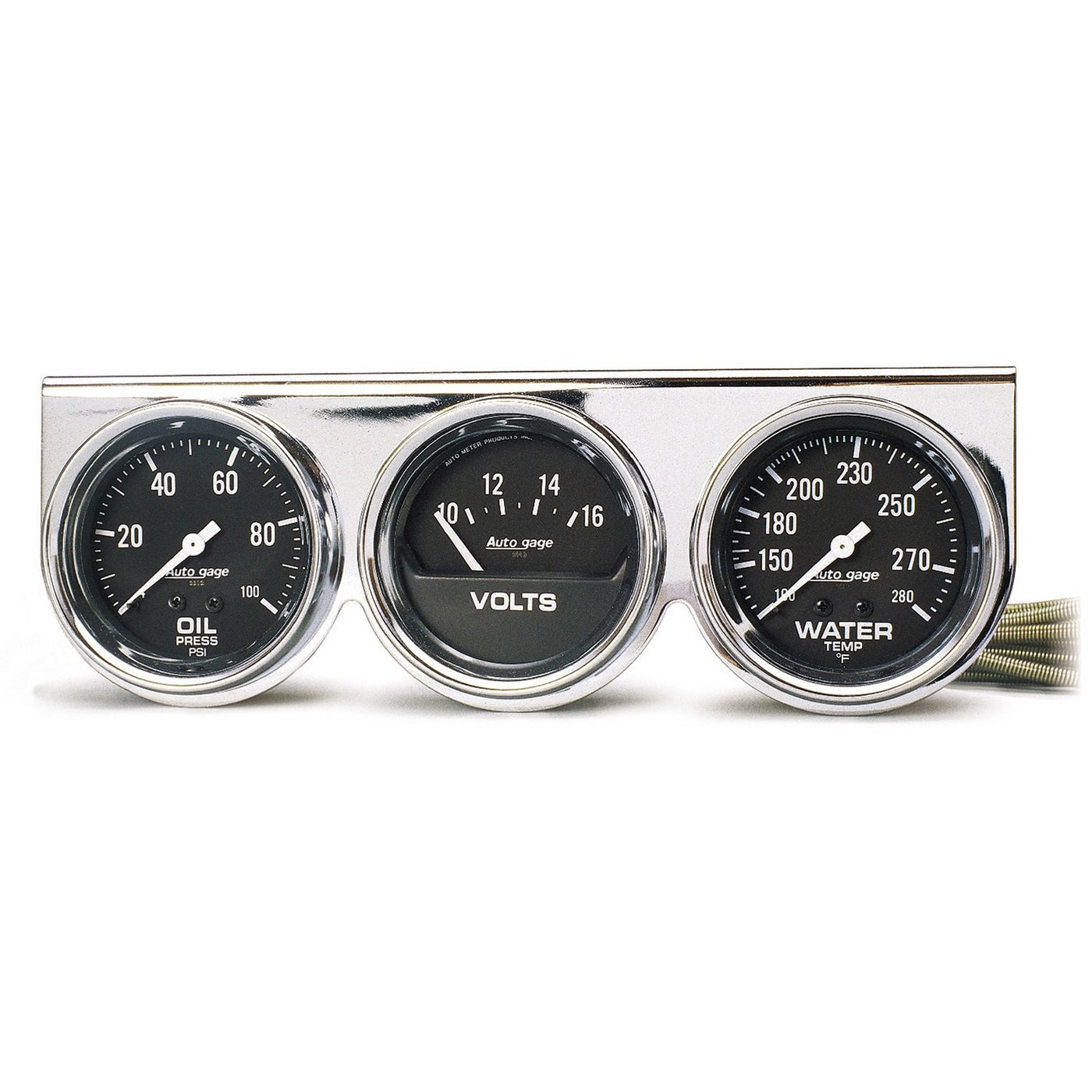 AUTO METER 2399 Autogage Black Oil/Water/Volt Gauge with Chrome Console,2.625 in.
