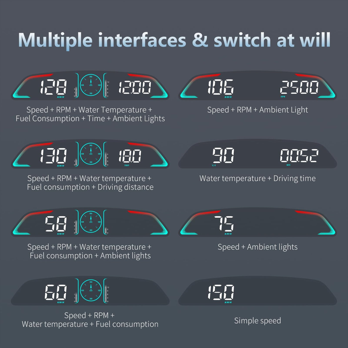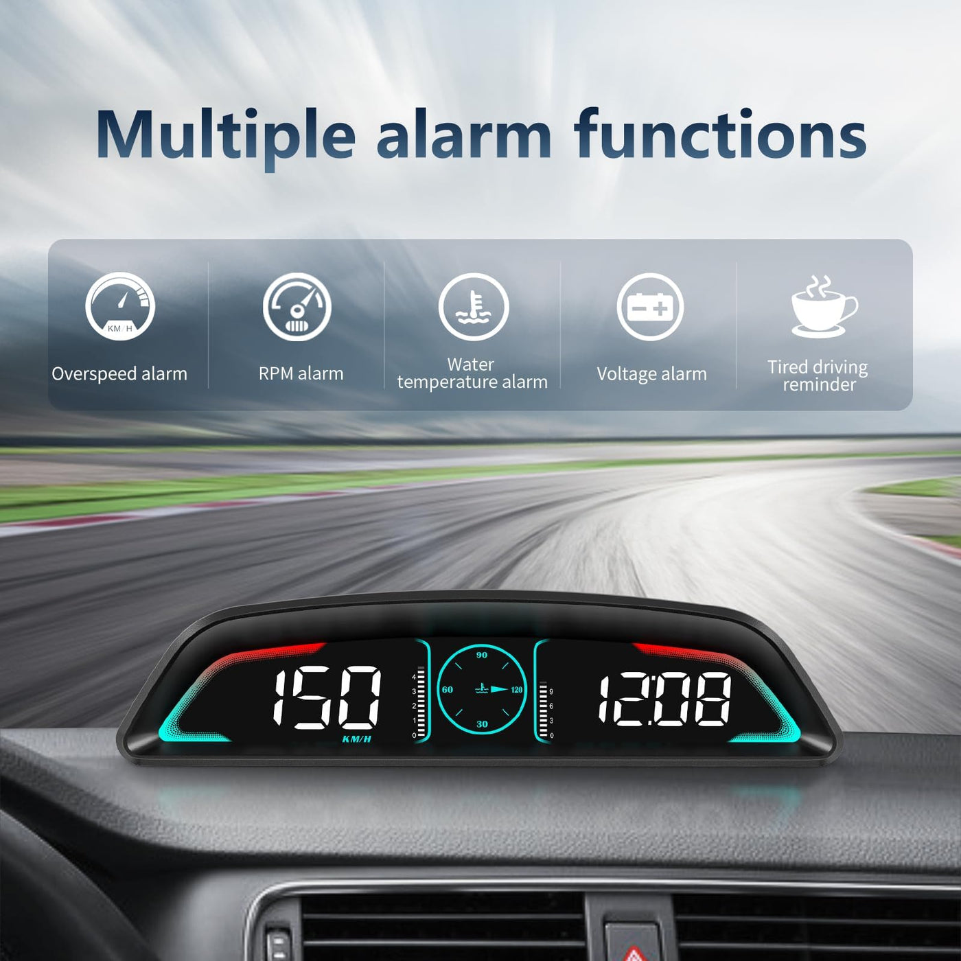 AZIJYV OBD2 Gauge Display,Head Up Display for Cars,Speedometer with Speed,Engine RPM,Clock,Overspeed Alarm,Water Temperature Ala
