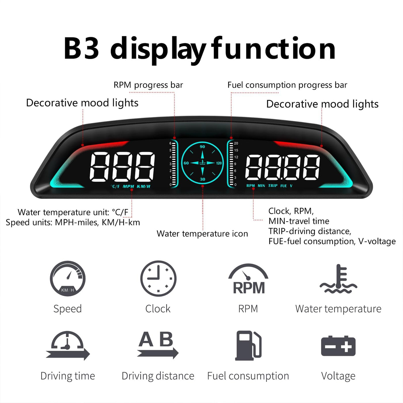 B3 is an OBD car speedometer which allows you to see your car's driving data more clearly while driving. This machine adopts gradient color structure, clear image and full sense of technology.5.5-inch large screen, can display multiple data at the same time.gps speedometer,speedometer,dragy,speedometer for car,car compass,hud,digital speedometer for car,heads up display
