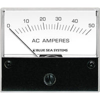 Q: What is the maximum current the Blue Sea 9630 AC Analog Ammeter can measure?A: The Blue Sea 9630 AC Analog Ammeter is designed to measure alternating current (AC) up to a maximum of 50 Amperes.