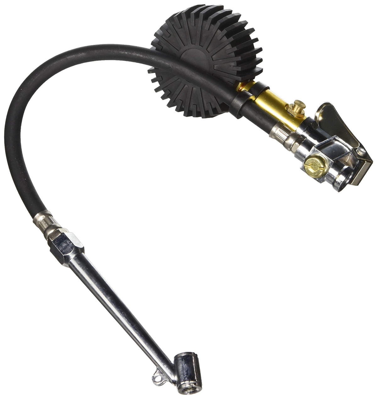 Q: Is the inflator compatible with different tire valve types?A: Yes, the inflator comes with a 6-inch aluminum lever dual chuck that is designed to fit various tire valve types, making it easy to use across different vehicles.