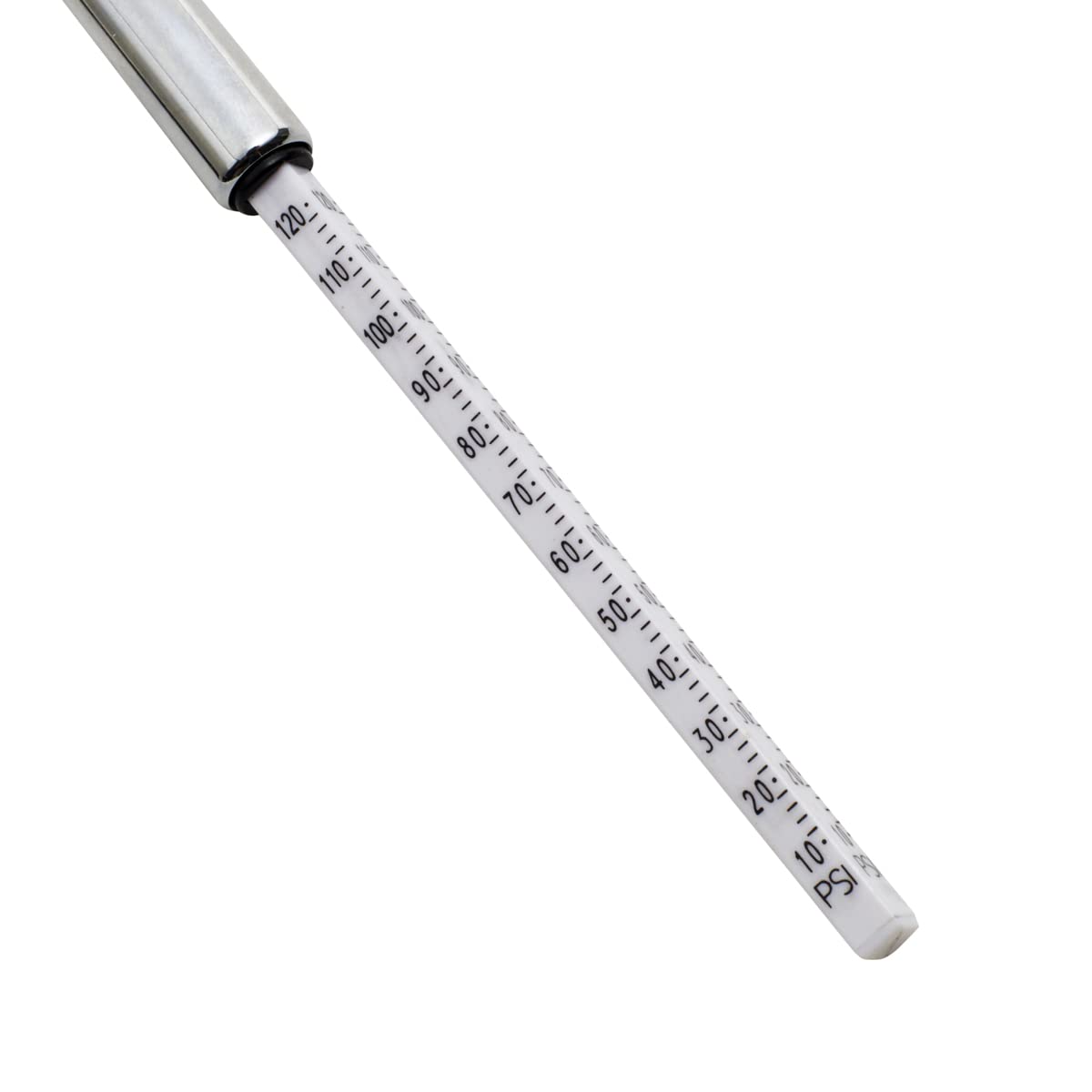 Q: What is the maximum PSI that the HELLA 5007 Bulb tire gauge can measure?A: The HELLA 5007 Bulb tire gauge can measure up to a maximum of 120 PSI, making it suitable for a wide range of tire inflation needs.