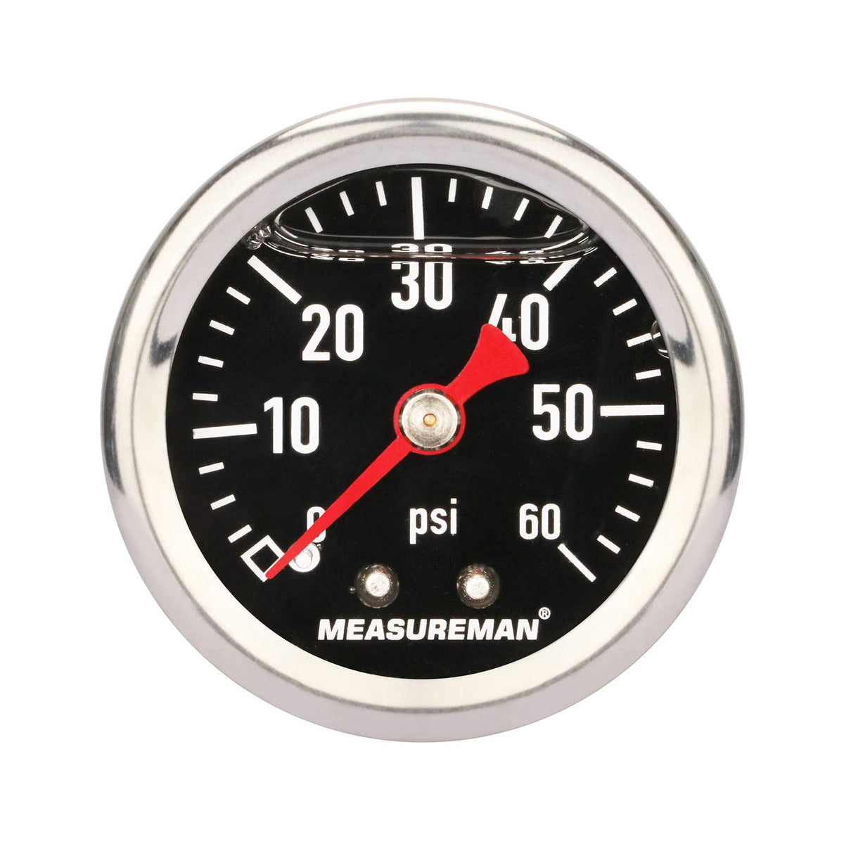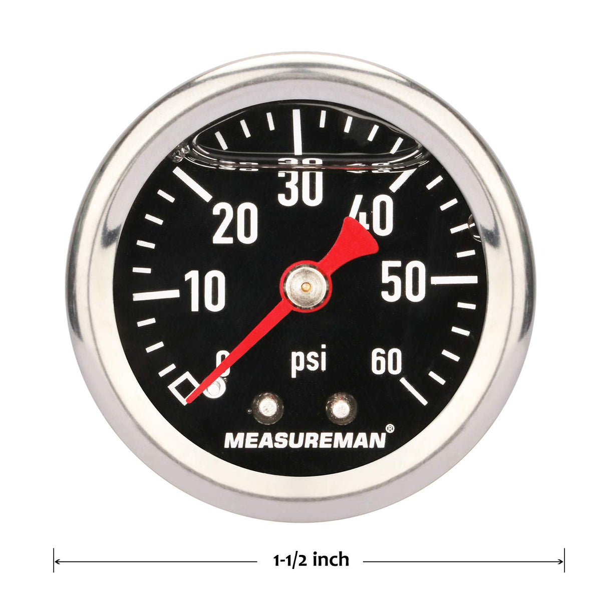 Measureman Fuel Pressure Gauge 0-60Psi 1.5'' Dial, 1/8'' Npt Back, Stainless Steel Case, Brass Inside, Glycerin Filled, Black Di