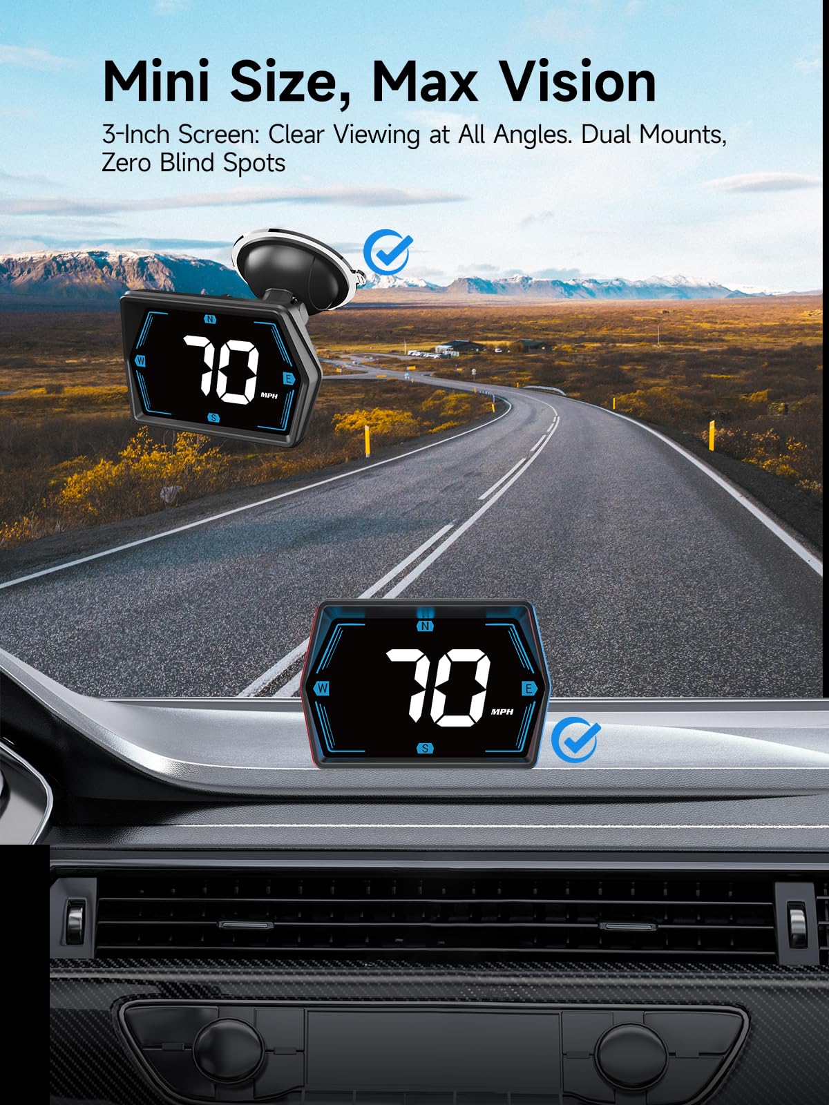Moman digital speedometer: Moman HB1 digital compass for car, compatible with all vehicles, small size, large font, clearly visible day and night. Plug and play, easy installation car speedometer. At the same time, Moman gps speedometer mph is also equipped with Compass, Overspeed Alarm, Auto-Sensing and Auto On/Off functions. Simple but not simple. Moman HS1,hud display car windshield, your good partner for safe driving