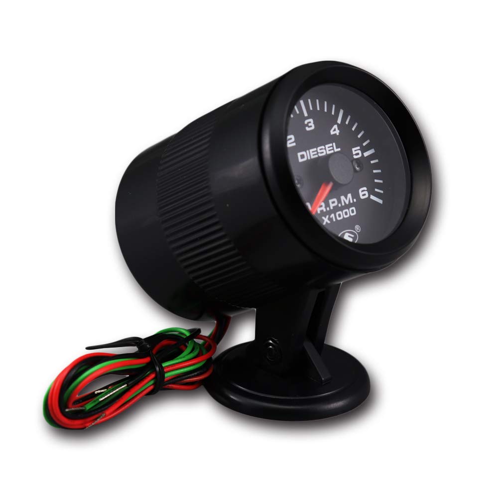 MOTOR METER RACING 52mm 2-1/16'' Universal Tachometer for Diesel Engine Alternator 6000 RPM Black Dial On Dash