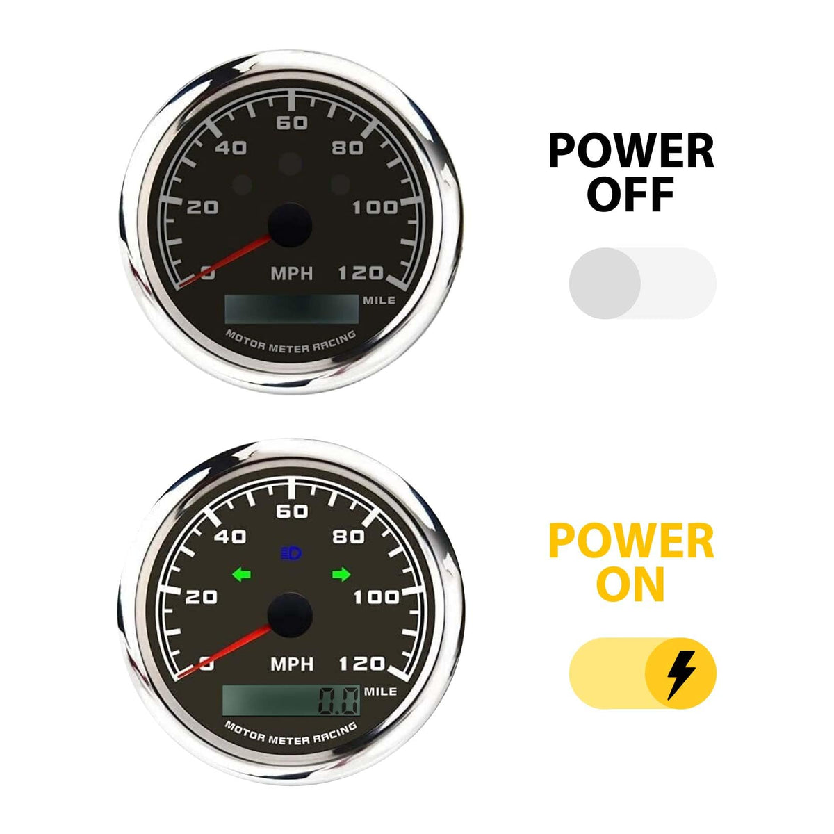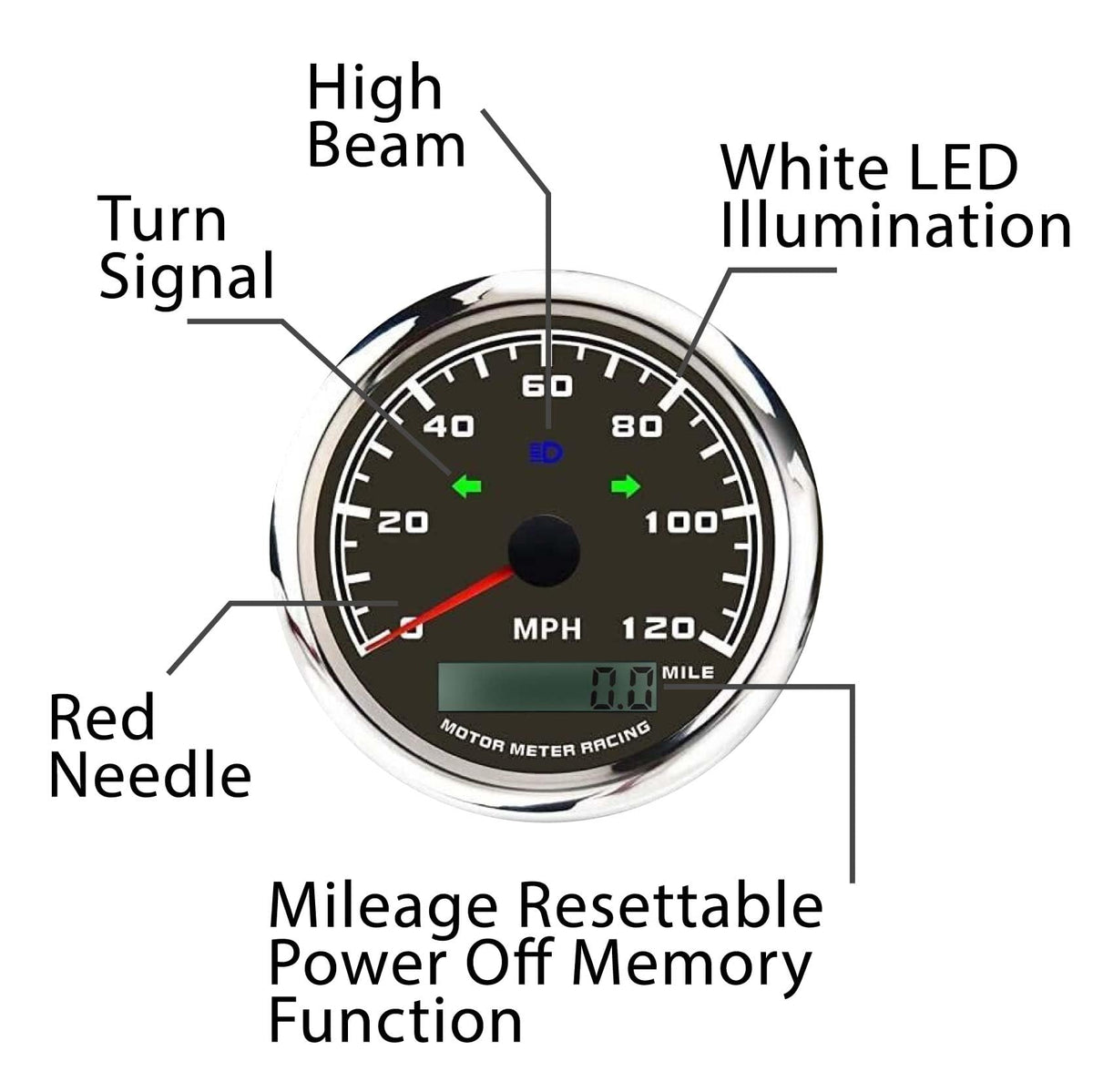 Motor Meter Racing W Pro 85Mm 3-3/8'' Gps Speedometer With Turn Signal High Beam 120 Mph Black Dial White Led Digital Odometer W