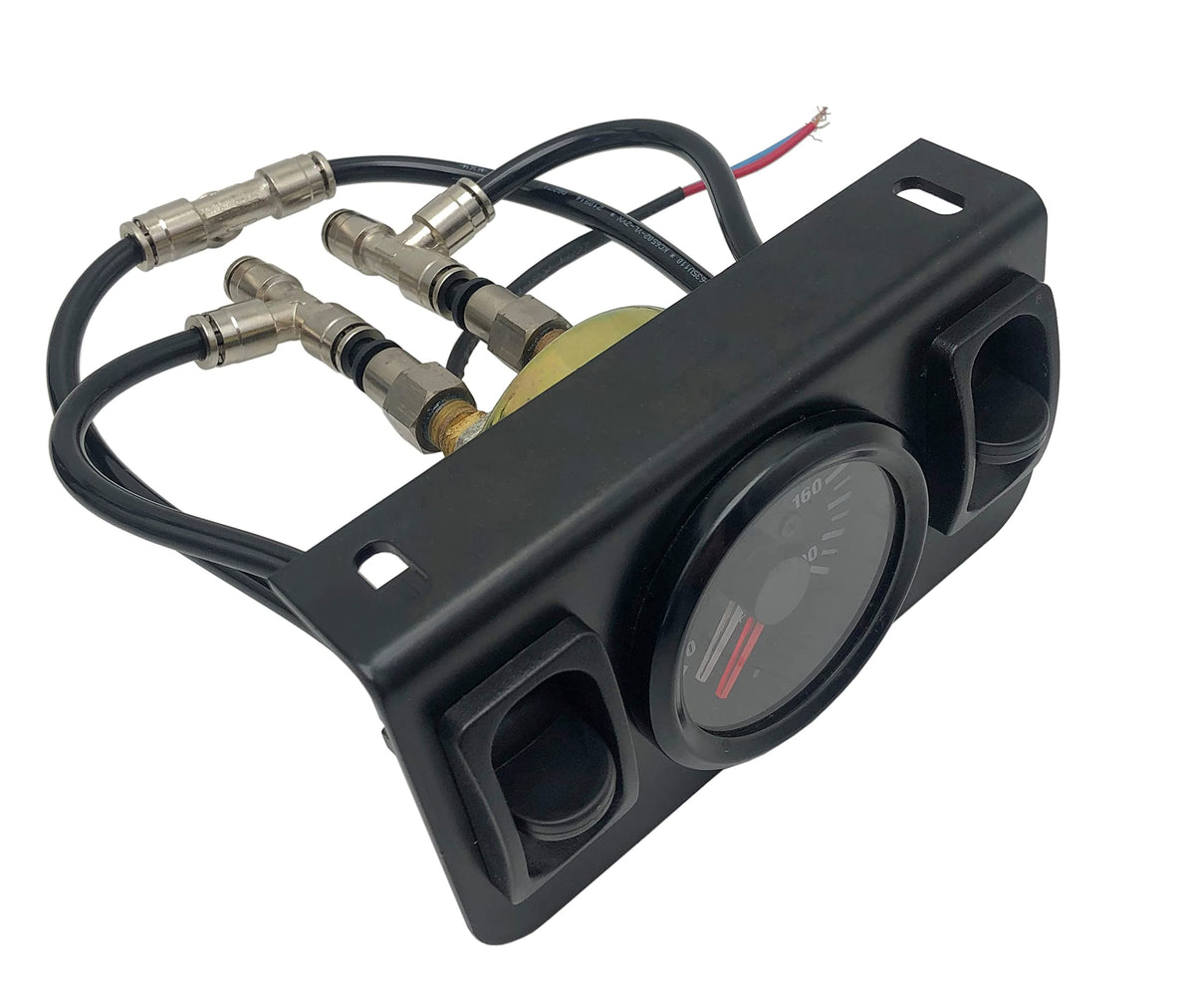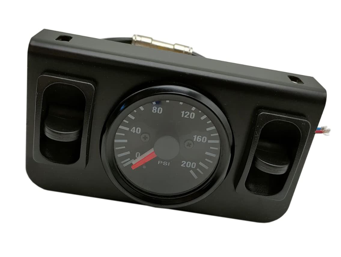 200 Psi Dual Needle Air Gauge With Luminous Light | Dual Needle Gauge + Paddle Valve + Steel Panel + Air Fittings | Matt Black Powder Coating On Switch Panel | Easy Installation, Just Plug In 1/4 Air Hose For The Installation | 100% Leakage Testing And One Year Warranty