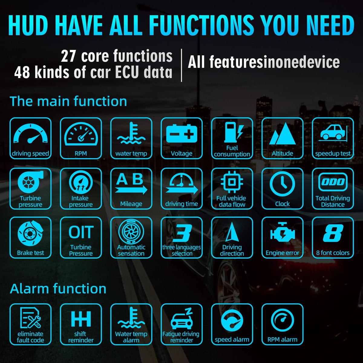 OBD2 HUD Compatibility Guide Applicable Vehicles: U.S.-market gasoline vehicles manufactured after 2004 with OBD2 protocol. Non-U.S. gasoline vehicles manufactured after 2008 with OBD2 protocol. Notes Compatibility may vary by vehicle firmware version and regional OBD2 protocol implementations. You can also inquire about compatibility with us before purchasing.