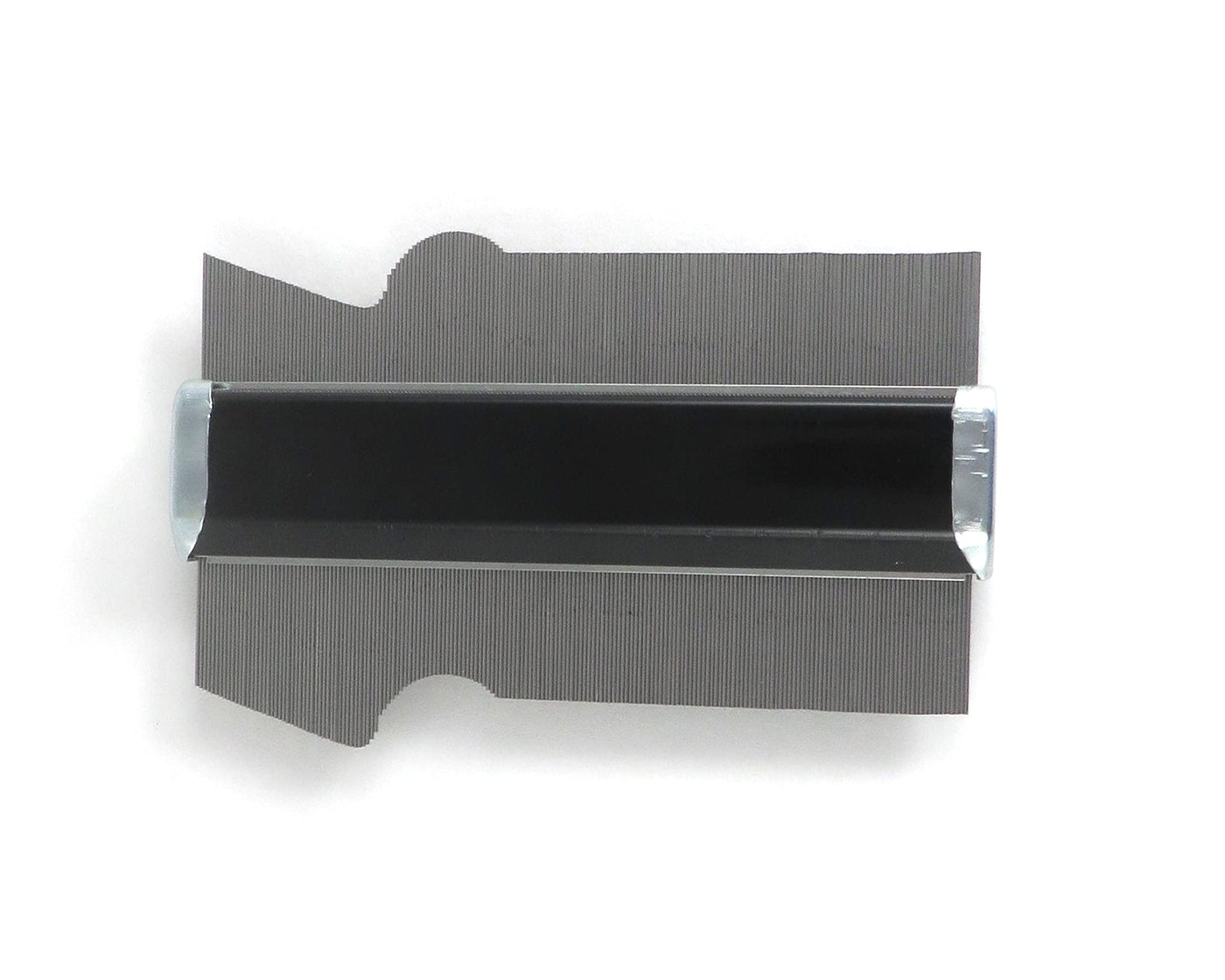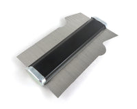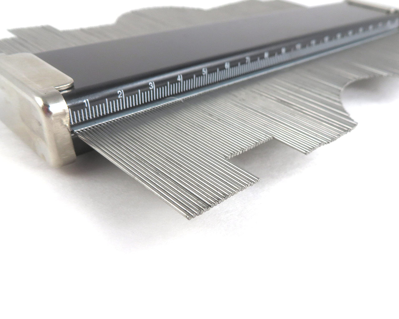Q: What is a contour profile gauge and how is it used?A: A contour profile gauge is a tool designed to copy the shape of an existing profile or molding. It consists of a set of small diameter stainless steel pins that can move independently while being held in a frame. When pressed against a profile, the gauge conforms to it, creating a negative outline that can be used to replicate the shape onto another surface.