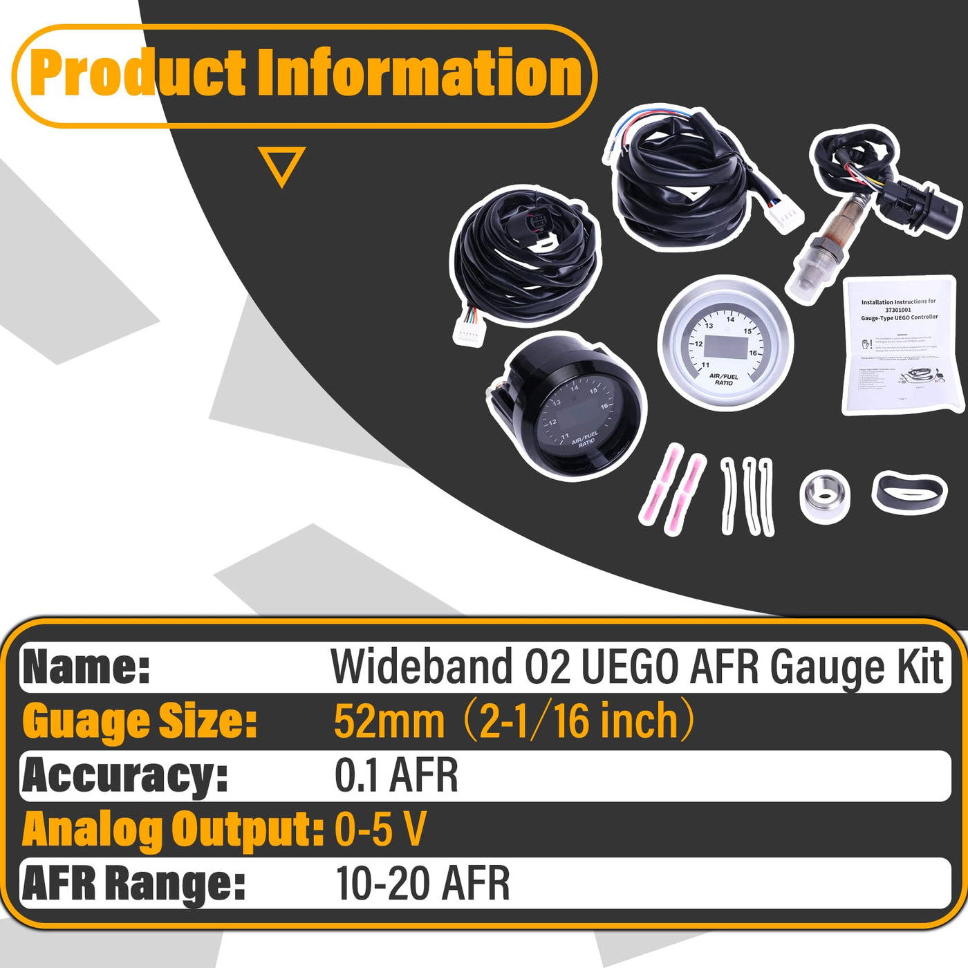 FHRHRY Wideband UEGO Air/Fuel Ratio Gauge 52mm with 4.9 LSU Sensor, Digital AFR Controller, 0-5V Analog Output, 10-20 AFR