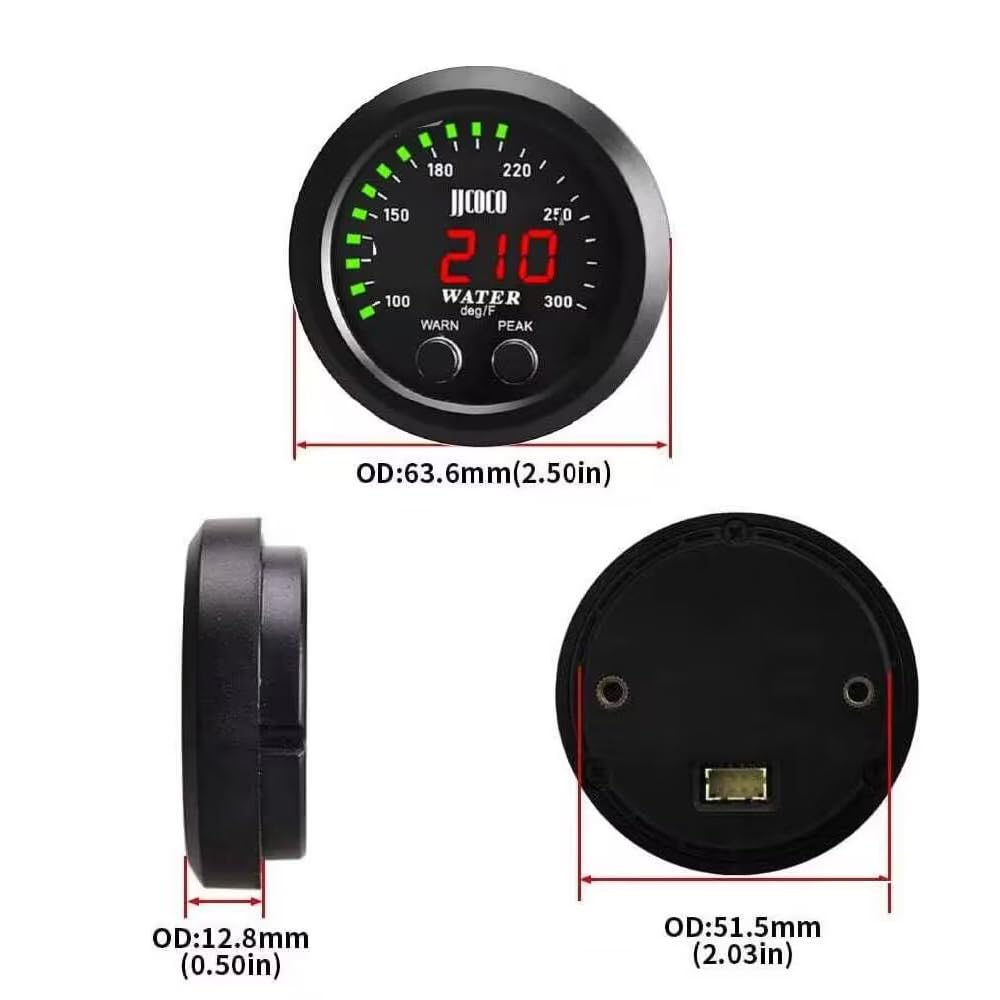 value:ZHSYMX Water Temperature Gauge 52mm LCD Digital,feature two separate digital Water Temperature, allowing you to keep an eye on your changing Temperature from 32-300F(0~150C). Air Pressure Gauge is Designed to Display the Amount of Air in the Bags of your Car or Truck's Water Temperature System. Monitoring and adjusting your Water Temperature is extremely important since it directly affects the way your vehicle rides. TFeatures:1.Digital display with LED. Used to measure the Water Temperature Levels from 32-300F(0~150C) Sensor mounting thread: 1/ 8 NPTSuitable for all 12V/24V car models.2. This gauge work with High Quality Electronic Sensor.3. Only for 12V/24V vehicles . work without the control unit.4. This is universal meter gauges that can fit any car.5. Smoke Lens, It is dark when the Power is off.Package including:1 * Gauge2 * High Quality 1/8Npt Electronic sensor1 * Holder1 * 16.5ft Sensor Cable}