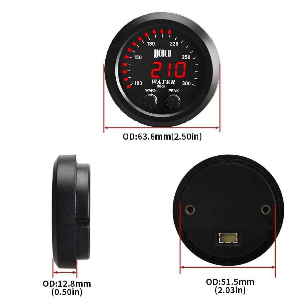 'value'':''ZHSYMX Water Temperature Gauge 52mm LCD Digital,feature two separate digital Water Temperature, allowing you to keep an eye on your changing Temperature from 32-300F(0~150C). Air Pressure Gauge is Designed to Display the Amount of Air in the Bags of your Car or Truck's Water Temperature System. Monitoring and adjusting your Water Temperature is extremely important since it directly affects the way your vehicle rides. TFeatures:1.Digital display with LED. Used to measure the Water Temperature Levels from 32-300F(0~150C) Sensor mounting thread: 1/ 8 NPTSuitable for all 12V/24V car models.2. This gauge work with High Quality Electronic Sensor.3. Only for 12V/24V vehicles . work without the control unit.4. This is universal meter gauges that can fit any car.5. Smoke Lens, It is dark when the Power is off.Package including:1 * Gauge2 * High Quality 1/8Npt Electronic sensor1 * Holder1 * 16.5ft Sensor Cable''}