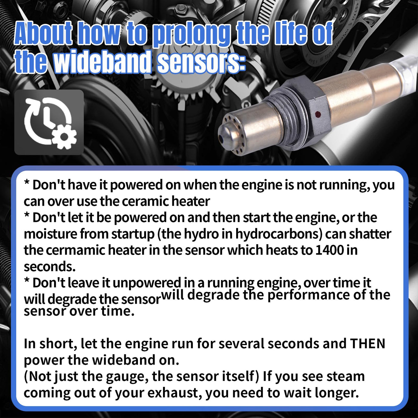 'value'':''Specifications:Case Size: 52mm (2 inches)Sensor Type: 4.9 SensorApplicable voltage: 12V/16VCompatibility: Suitable for various vehicle types and engine management systems.Note: It is strictly prohibited to use a power supply that exceeds 18V.>Advantages:--Easy Installation: The standard 52mm housing ensures a hassle-free installation process in virtually any location.--Accurate Measurements: Our wideband AFR gauge provides precise air/fuel ratio readings, allowing for optimal engine performance and fuel efficiency.--Enhanced Functionality: The included controller box offers control and adjustment options, enabling users to customize and fine-tune the gauge's performance according to their specific needs.--Reliable Performance: The components included in the kit are specifically designed to work together seamlessly, ensuring accurate measurements and long-lasting performance.--Real-time Monitoring: Provides instant and accurate air/fuel ratio readings.--Easy Installation: Supports plug-and-play, making the installation process easy and fast.Product Packaging:1 Wideband Air/Fuel Ratio Gauge1 LSU4.9 UEGO Sensor1 9.8ft UEGO Sensor Wire1 O2 Sensor Bung1 Controller Box1 3.2ft Controller to Gauge Wire Harness1 3ft Controller to Power Supply Wire Harness''},