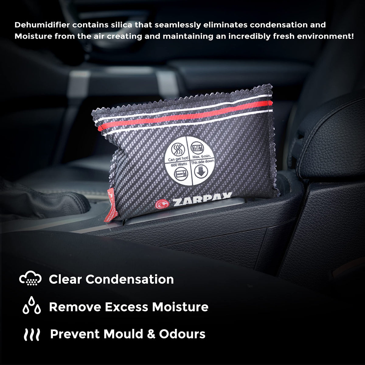 The Zarpax Auto Dehumidifier is an innovative and stylish car accessory that gets rid of condensation and musty odors in your vehicle. Utilizing our proven Zarpax dehumidifying technology, the product effectively absorbs excess moisture and makes driving safer and more pleasant.