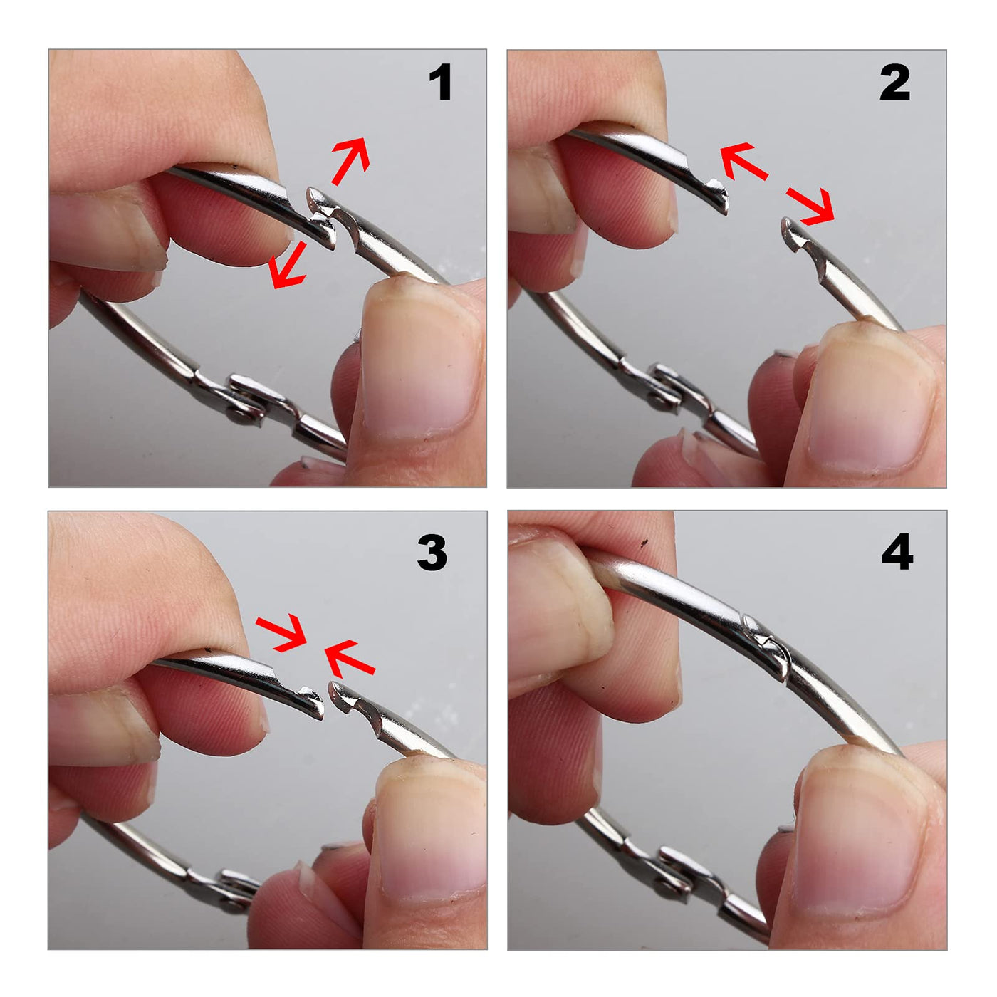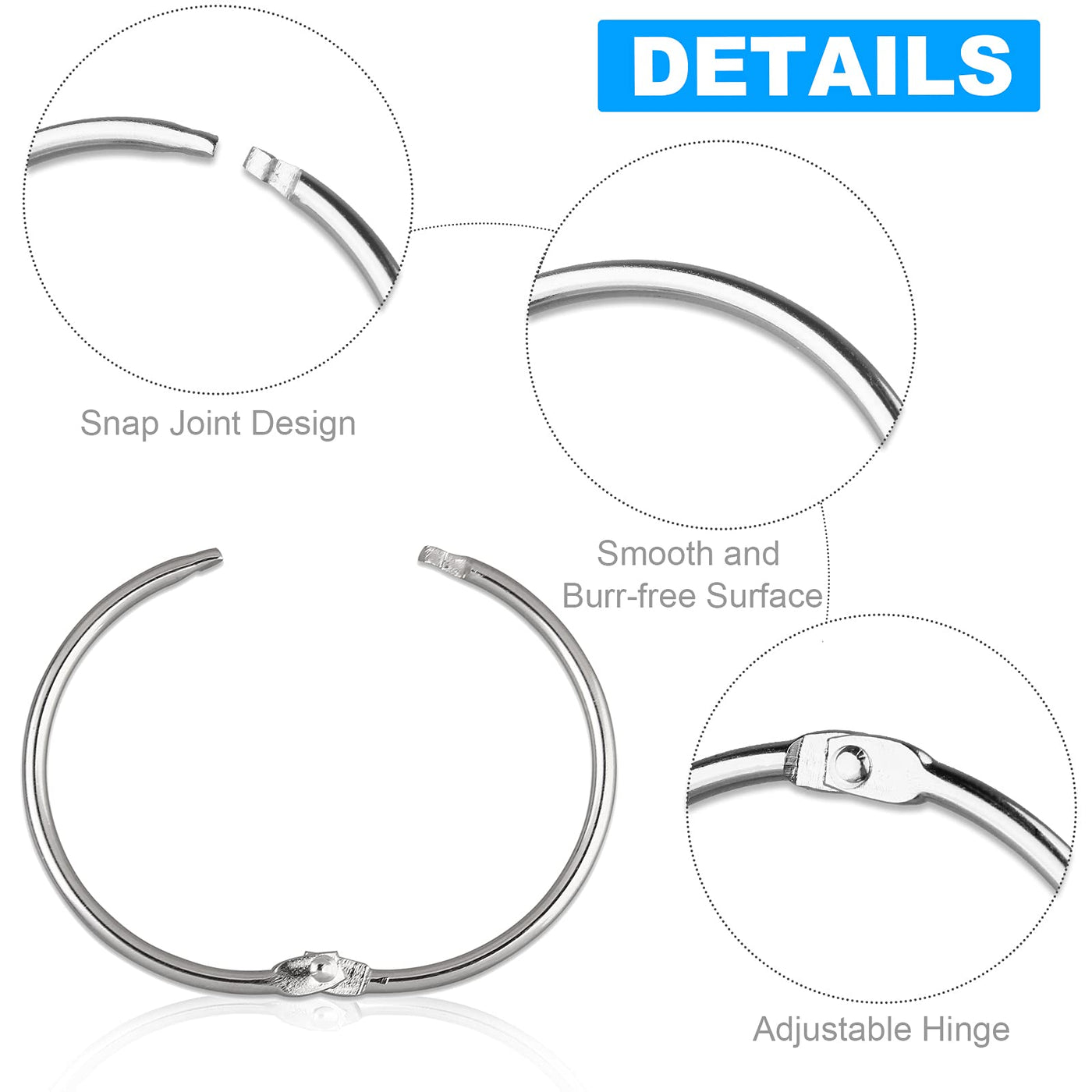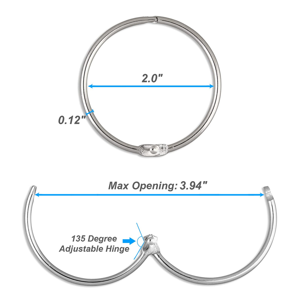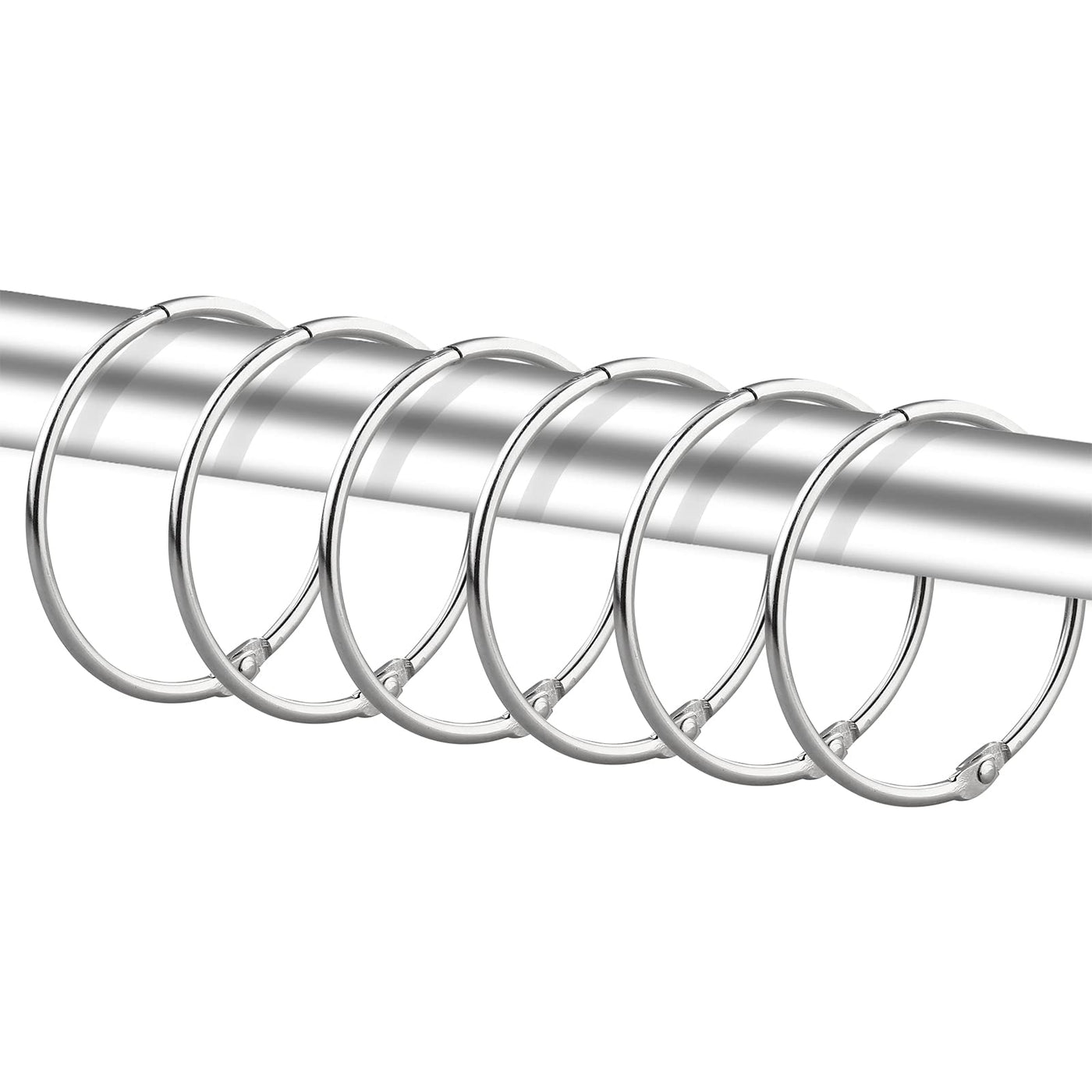 Shower Curtain Rings Hooks for Bathroom Curtains Rods, Set of 24. *Made of 100% Metal. *Highly rust proof for lasting. *Snap clasp closure design. Easy to install. *Environmental protection plating for good look and improving rust resistance. *Classic ring pattern. *Versatile usage: can be used as shower rings, large binder rings, Key rings, loose-leaf rings, memo filing rings, scrapbook rings, sample book rings, organizing tools etc. *Suitable for bathroom, bedroom, garage, living room. *Item Dimensions: 2 x 2 x 0.2 inch. *Package Include: 24 x Shower Curtain Rings