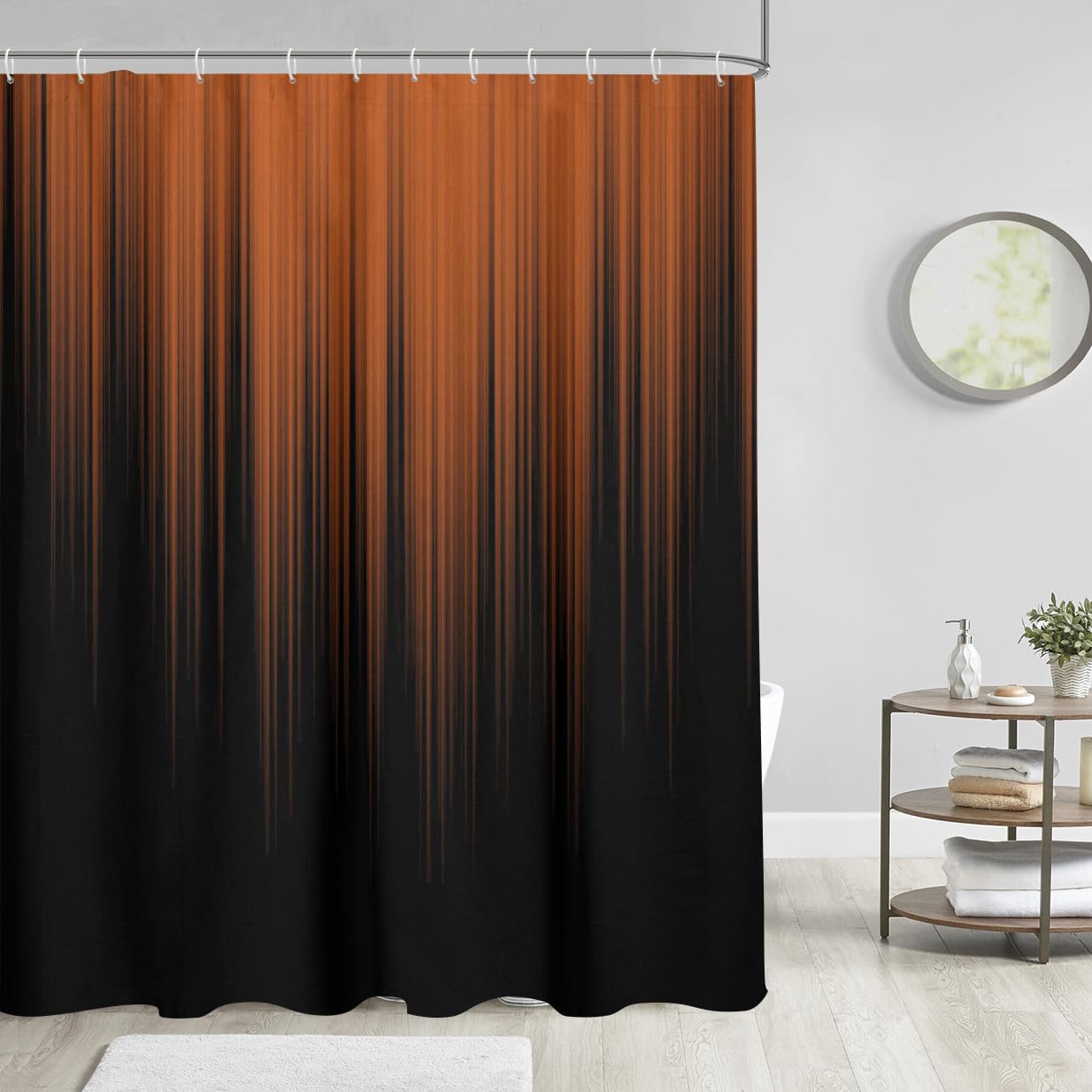 Aatter Orange And Black Shower Curtain Abstract Ombre Terracotta Boho Simple Striped Artwork Men Adult Gothic Art Two Tone Gradient Home Bathroom Decor Bathtub Set With 12 Hooks, 72X72, Fashion