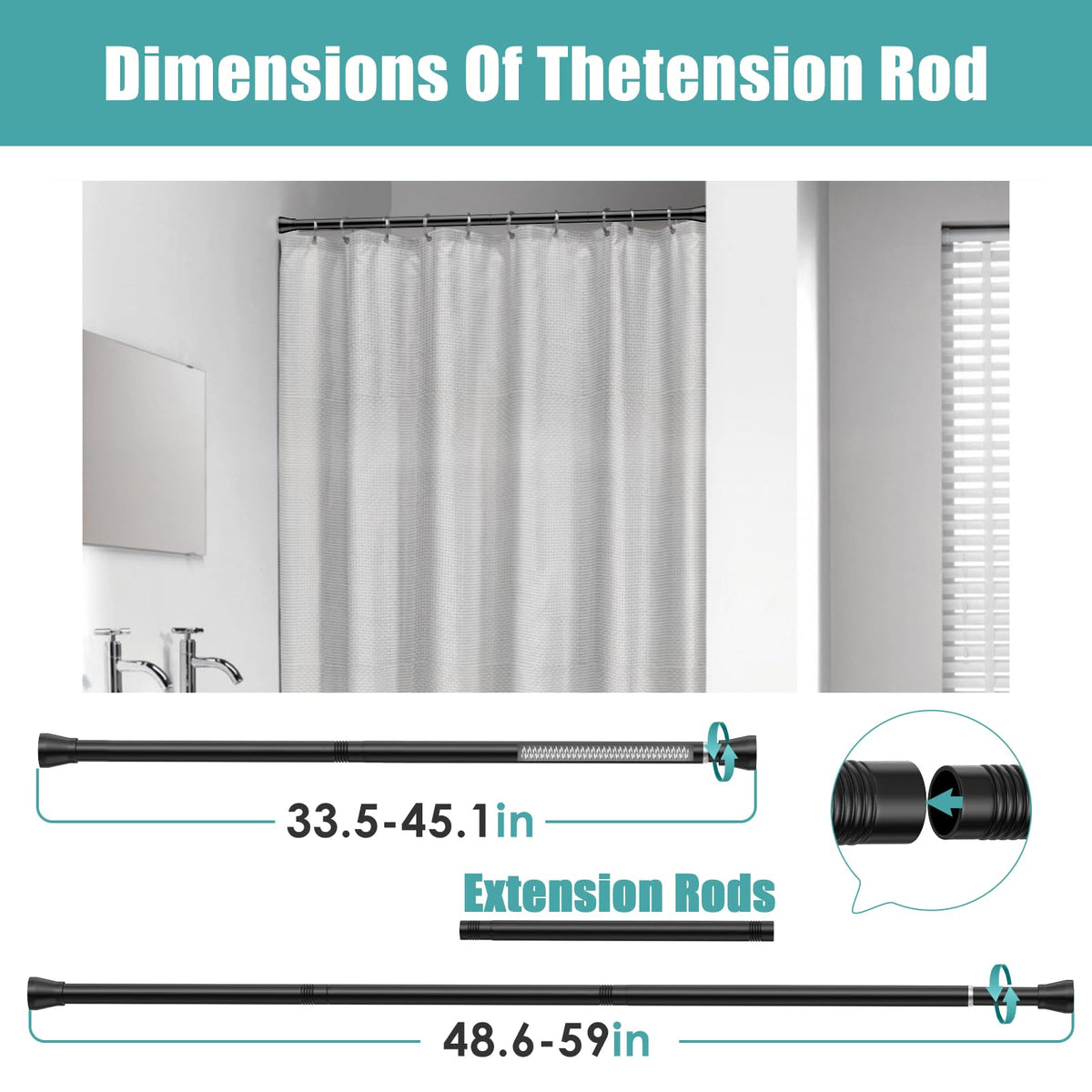 Aizesi Small Shower Curtain Rod Adjustable Curtain Rods 34-59 Inch Never Rust & Non-Slip Short Shower Rod No Drilling Shower Rods Tension Curtain Rod Curtain Rods Bathroom, Black