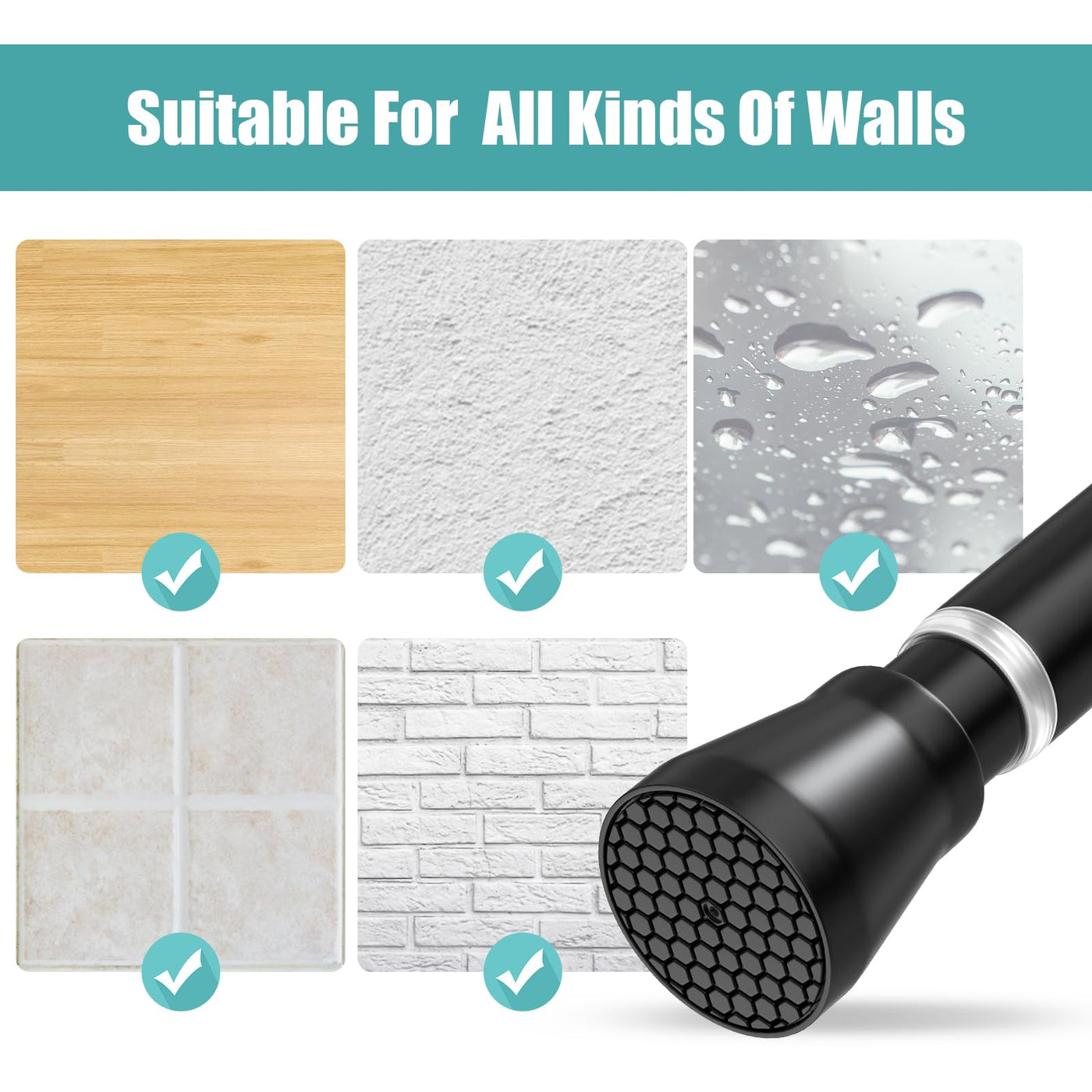 Q: What material is the shower curtain rod made of?A: The curtain rod is constructed from high-quality high carbon steel, ensuring durability and strength. It has a baked enamel finish that enhances its longevity.